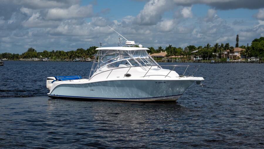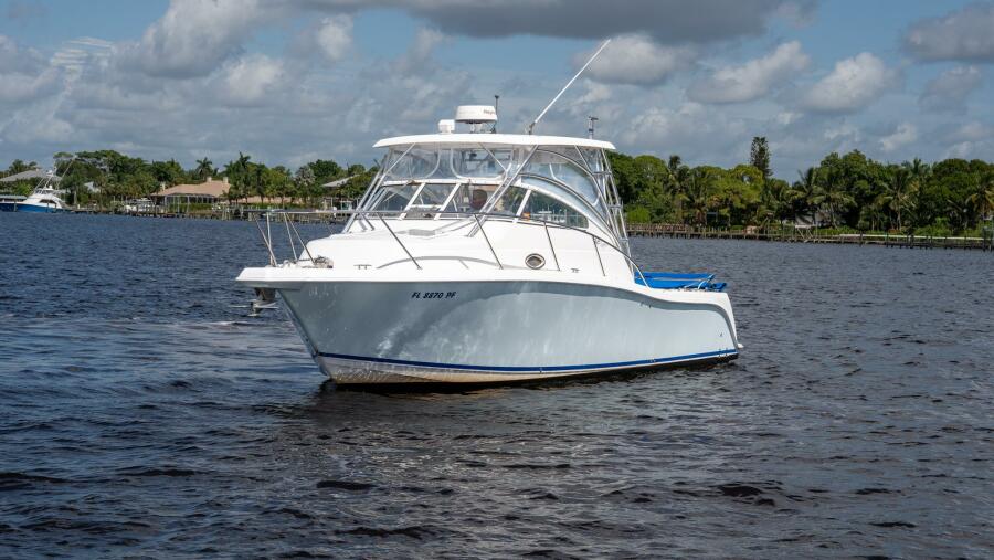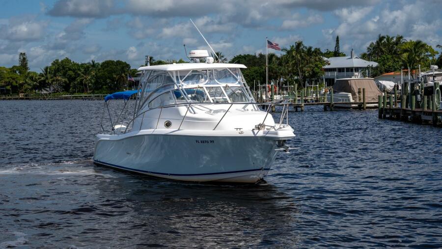 The 32 Express offers an impressive amount of space for her size, featuring a tournament-style cockpit, wide-beam stability, and overnight capabilities. She shows beautifully for her age and has been extremely well cared for. Below deck, she’s outfitted with a spacious cabin that includes a convertible dinette, galley, and enclosed head, providing comfortable accommodations for overnight trips.