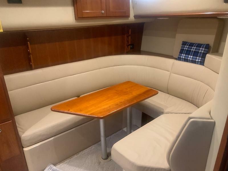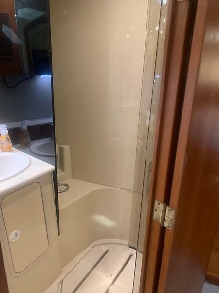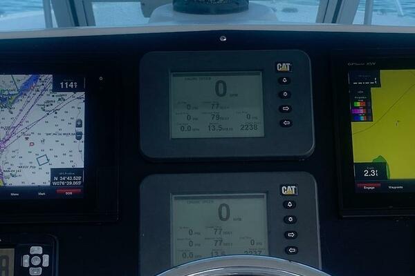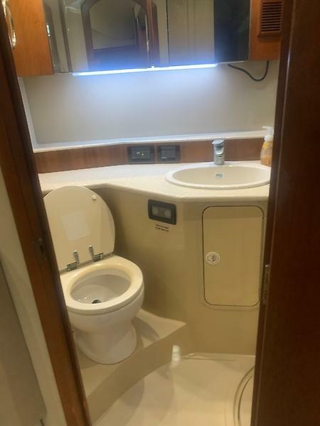 2006 38 Rampage Express powered by twin C9 Caterpillar Diesel Engines. She has a cruise speed of 25 knots and can reach top speed of 30 knots. Stepping aboard you will see she is a large 38' vessel and offers not only a great platform for your offshore enthusiast, with a well-appointed helm deck and very nice accommodations below. The helm deck offers reverse cycle Heating and Air Conditioning as well as a full Garmin Electronics Package and a large port side L-Shape bench seat. Below deck you will find a full galley to starboard, a large U-Shaped dinette to port which can be used as additional berthing, marine head to port just forward of the dinette as well as a large V-Berth forward. Looking for a clean well maintained express? Give me a call to set up a time to come see this 38.