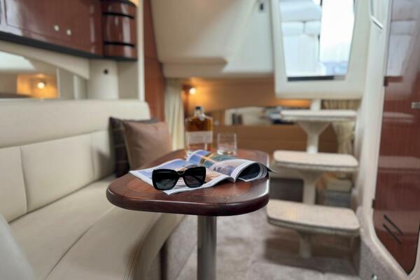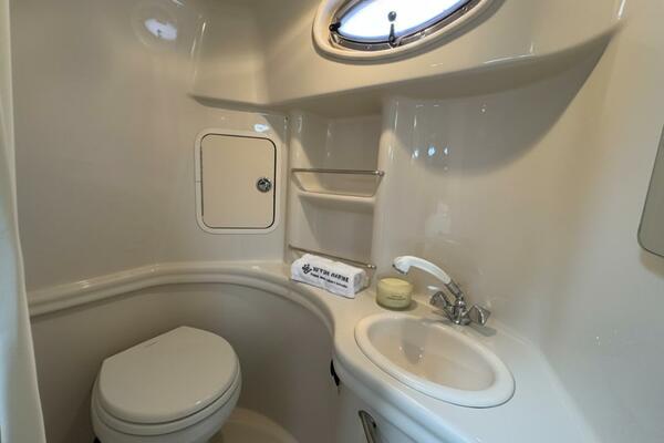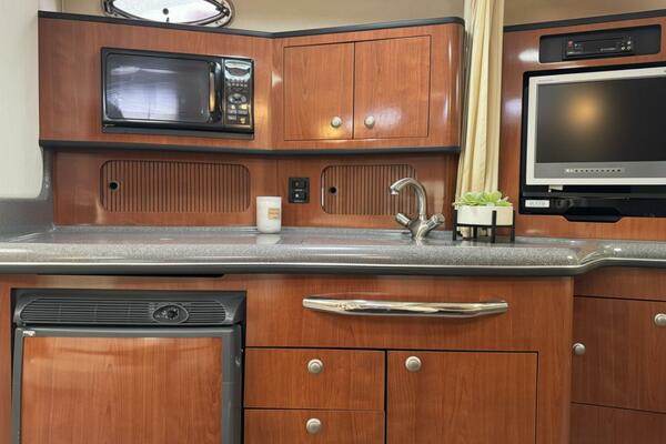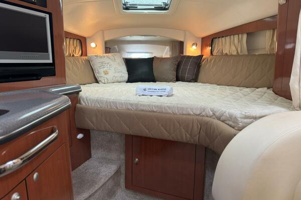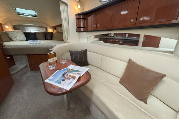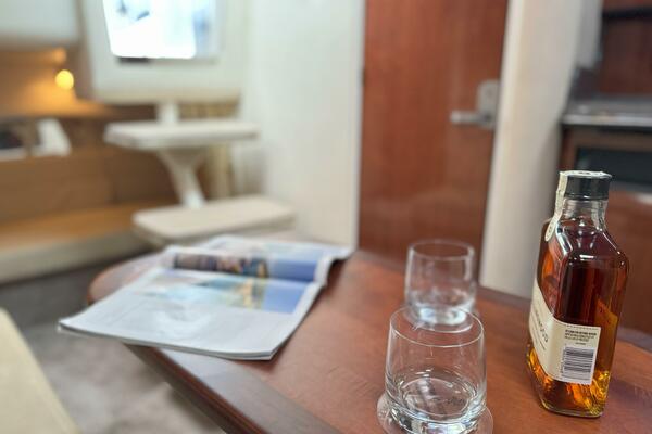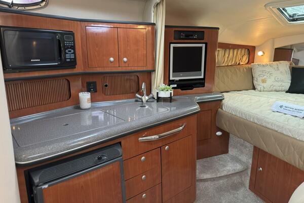When you step aboard the vessel shows very well, the interior cabin space, shows the updated 2006 version with the inviting salon giving space for relaxation and socialization with friends and family. The galley boats abundant counter space and storage solutions normally seen in a vessel larger than this.