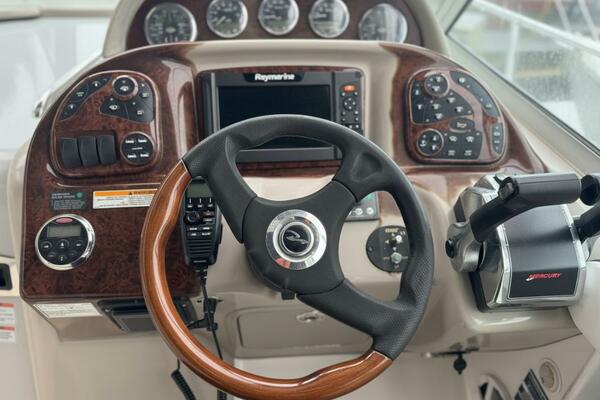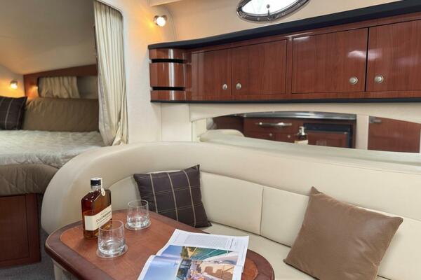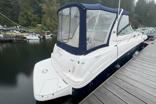 It'll take your breath away. The elegant curves and graceful style of this classic 300 Sundancer is guaranteed to capture attention. Come onboard and you'll see how the luxuriously appointed deck and wide open cabin of this handcrafted boat will make cruising more comfortable than you ever imagined.