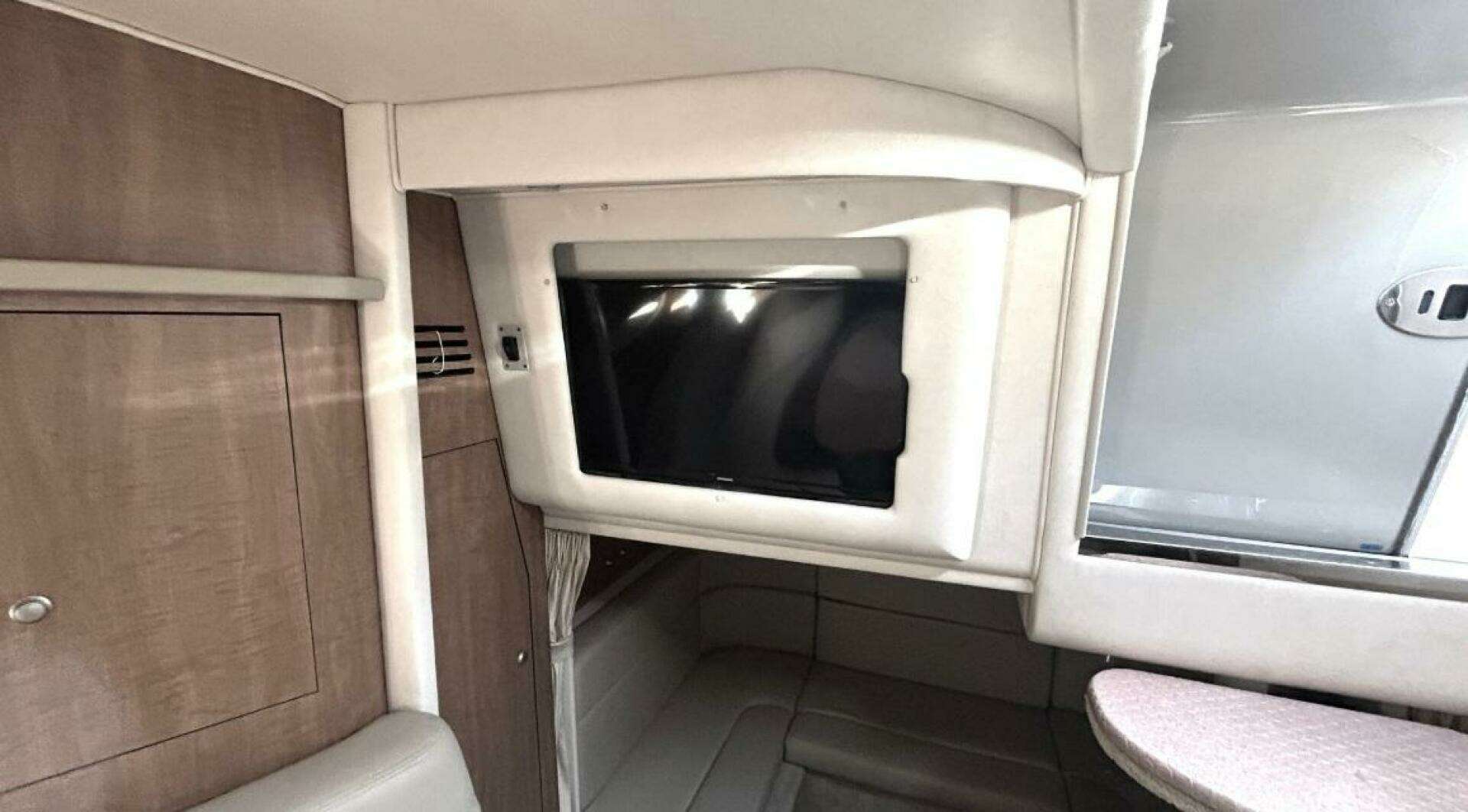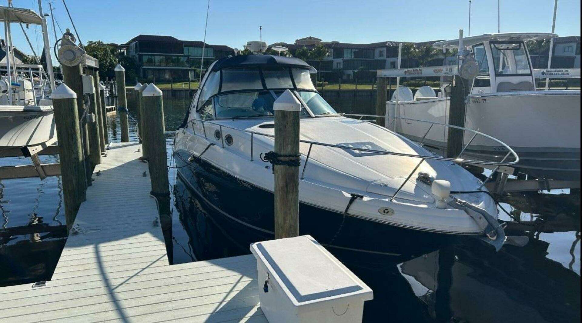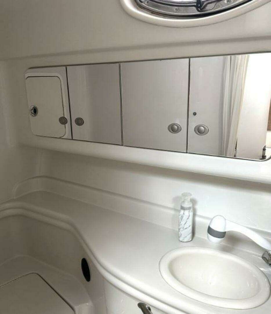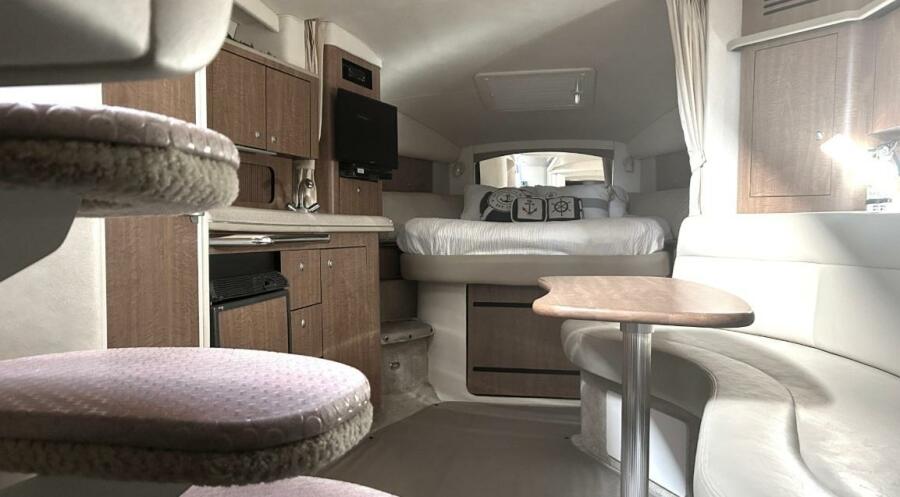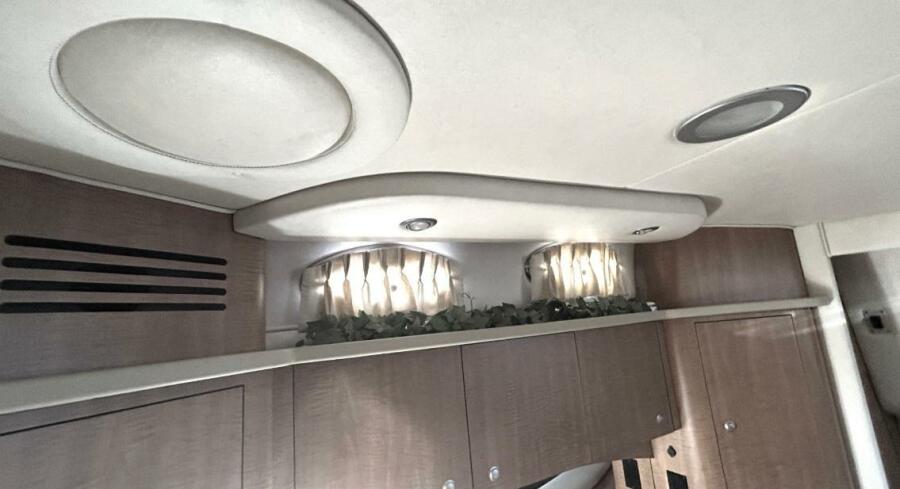 There's nothing quite like the exhilarating profile of this sleek 320 Sundancer. Its dramatic lines and bold colors make everything else look like it's sitting still. Exciting features include cockpit wet bar with Corian counter, extra-wide bench-style helm seating with two flip-up thigh-rise bolsters, optional underwater swim platform lighting, premium cabin surround sound, and lots more.