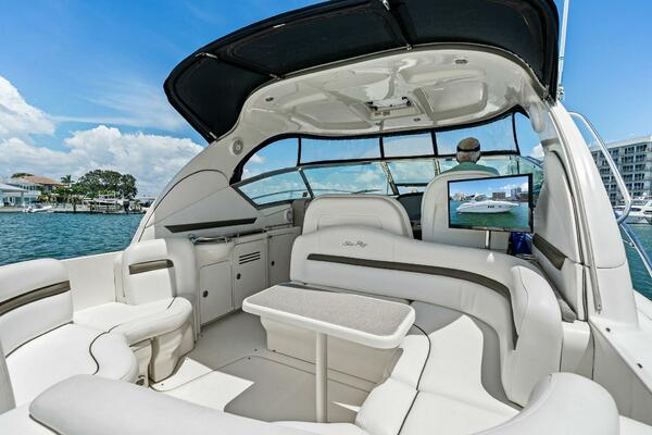 2006 38 Sea Ray Sundancer Ty One On is a freshly-detailed sport cruiser waiting for her new owner. Featuring a spacious master stateroom, separate head with enclosed shower and ample galley, she is perfect for overnight trips to explore new anchorages. She is also great for entertaining with a large cockpit and bow sun pad. Come see this 2006 38 Sea Ray Sundancer today!