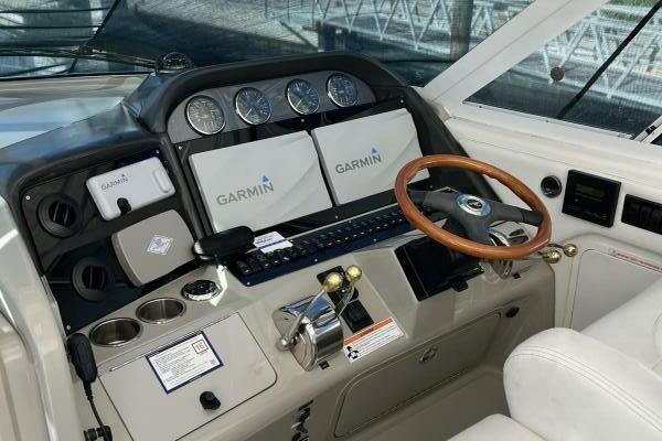 2006 Sea Ray 40 Motoryacht just listed for sale. She has a brand new Cummins diesel with 5 hours starboard side and a brand new Onan genset with 4 hours. The cockpit AC units have been replaced. The boat just had a complete bottom job, detail and shaft. The saloon carpet is brand new as well along with new Garmin twin chart plotters, VHF and auto pilot. This may be the nicest 40 Motoryacht on the market. Call for a personal appointment.