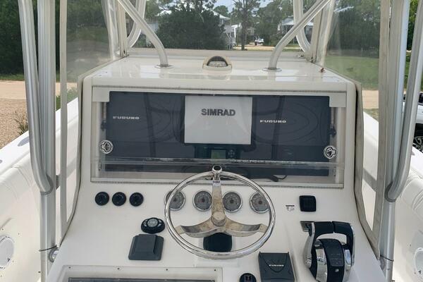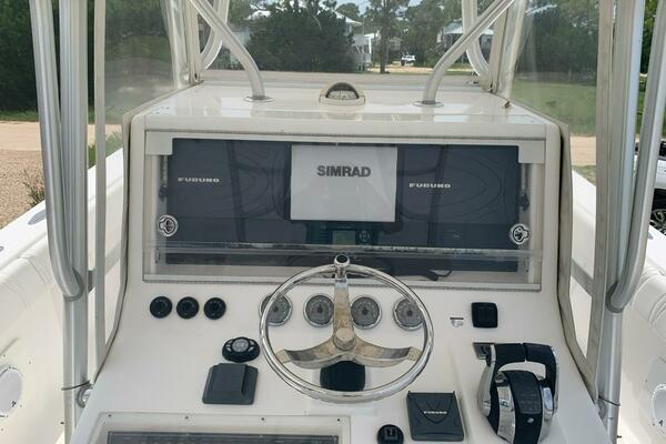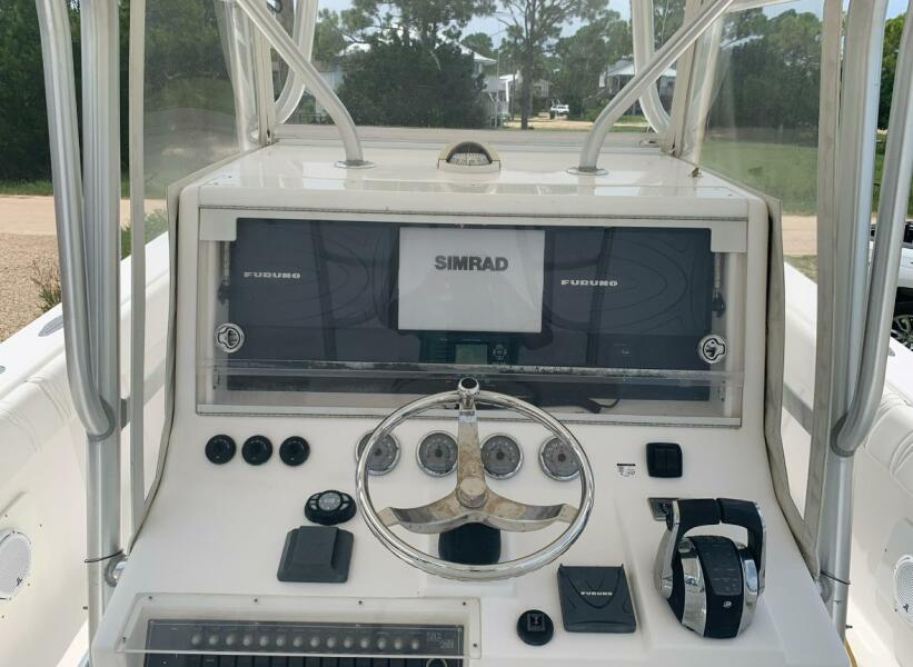 Equipped with a comprehensive electronics suite from Furuno and Simrad, the navigation and fish-finding capabilities are top-tier. Radar, GPS, sonar, and digital engine displays are all easily accessible from the helm, providing everything needed for safe and effective operation on the water.
