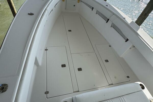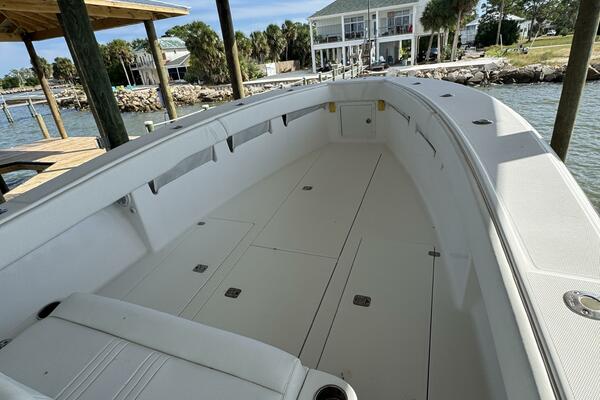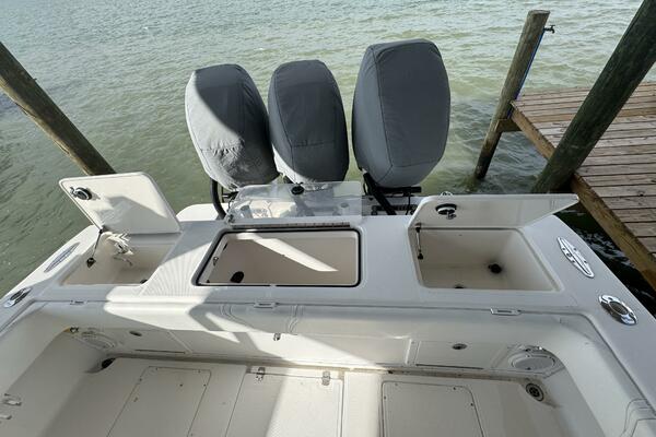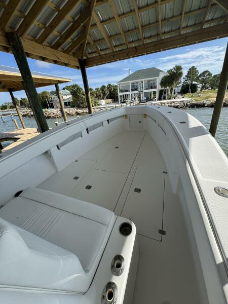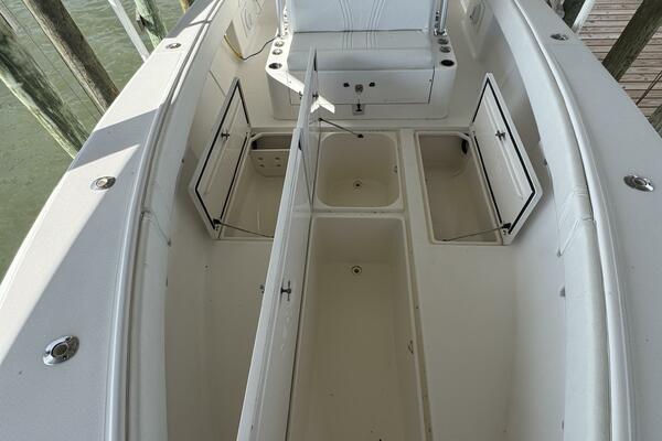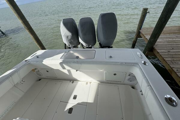 - Wide-open deck layout with in-deck fishboxes and transom livewell