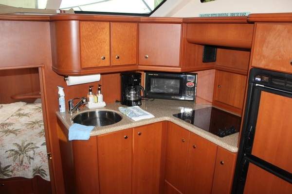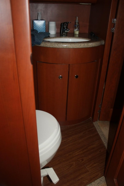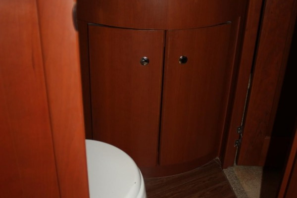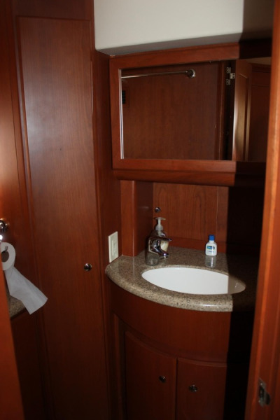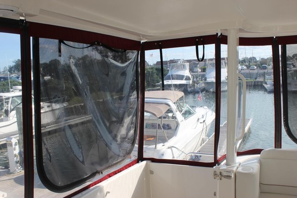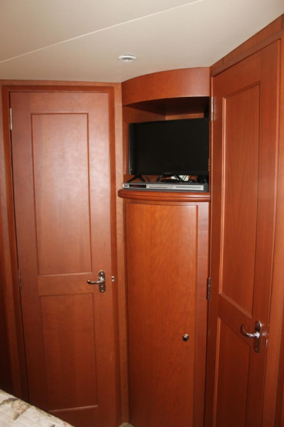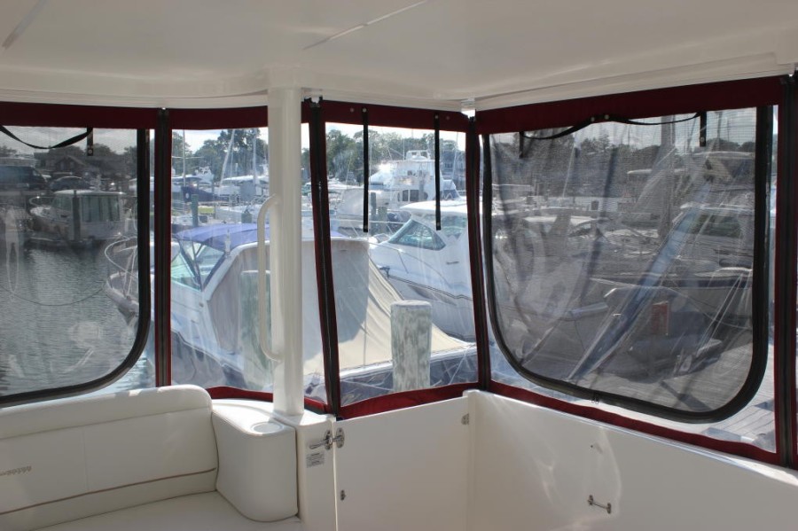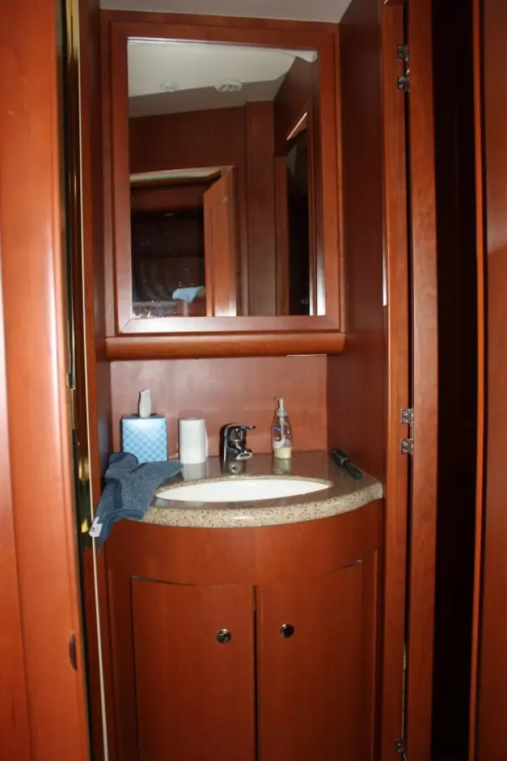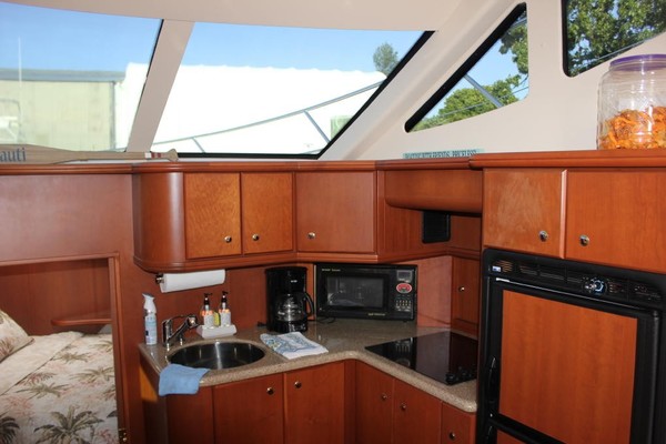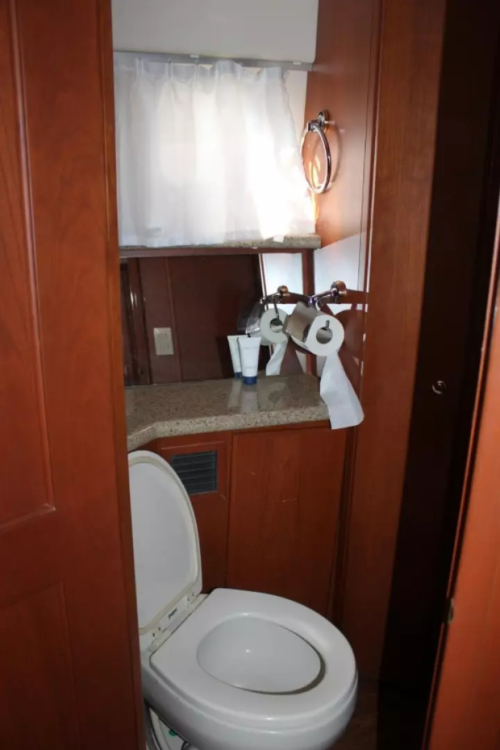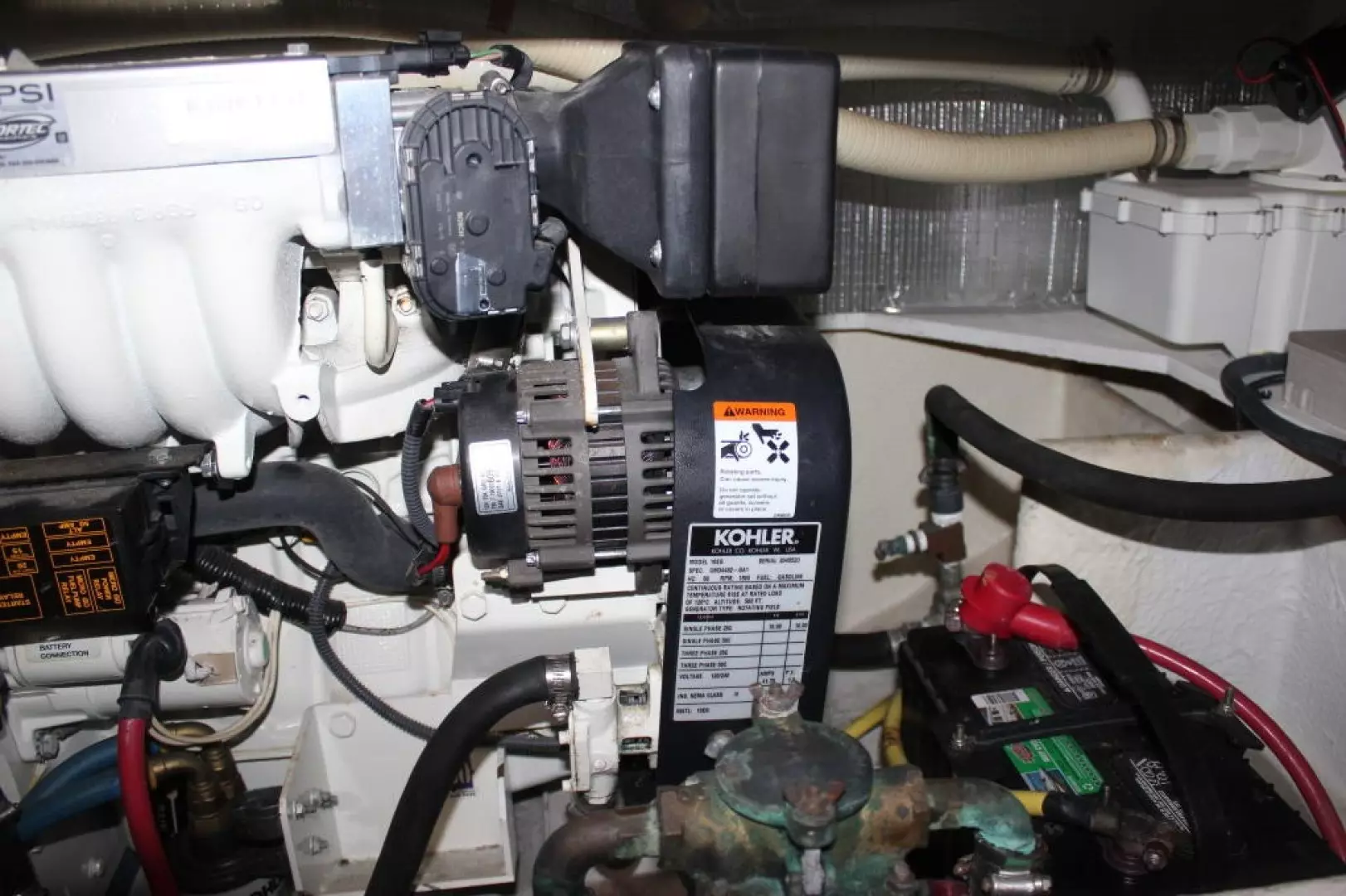Our Wine Knot could be your home on the water!! Elevated side decks result in a huge salon/galley/dinette area which is tastefully finished with satin cherry cabinets, Corian counters, and synthetic leather furnishings. The full-service galley, a step down from salon, has a serving counter, generous storage and hardwood flooring. The aft master stateroom has a walkaround queen bed and separate shower and toilet stalls along the port bulkhead, and the forward stateroom also has queen bed and private access to the second day head. The aft deck has a hardtop, bench seat, and wet bar. She is equipped with T-380 HP Crusader 8.1 HO engines with 182 hours, a 10 kW Kohler genset with 210 hours and bow and stern thrusters. She is in her slip in Greenport NY and ready for her next owner. Call for an appointment for a viewing.