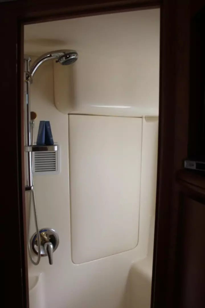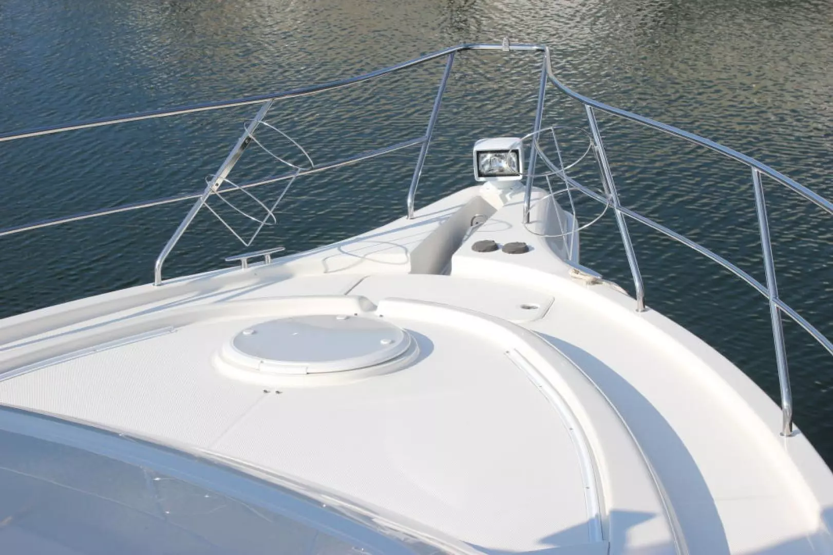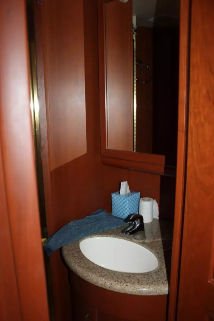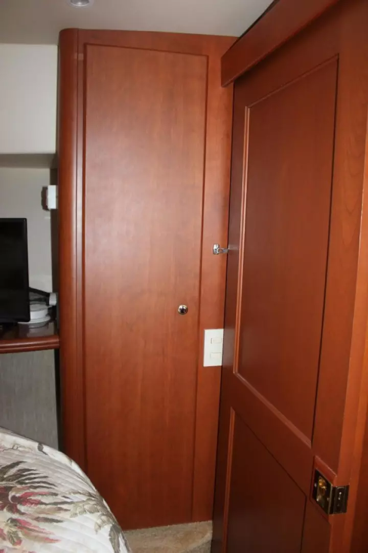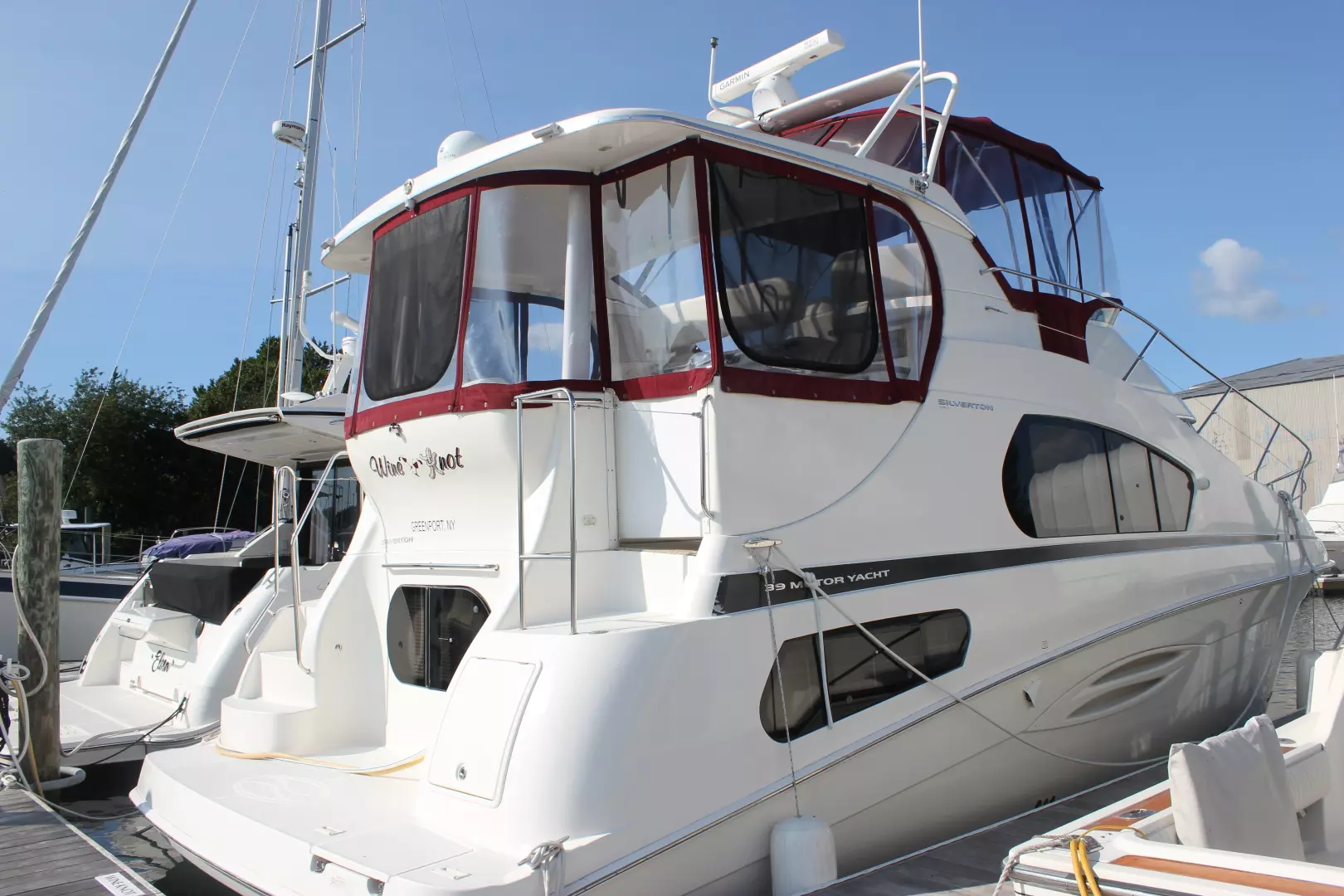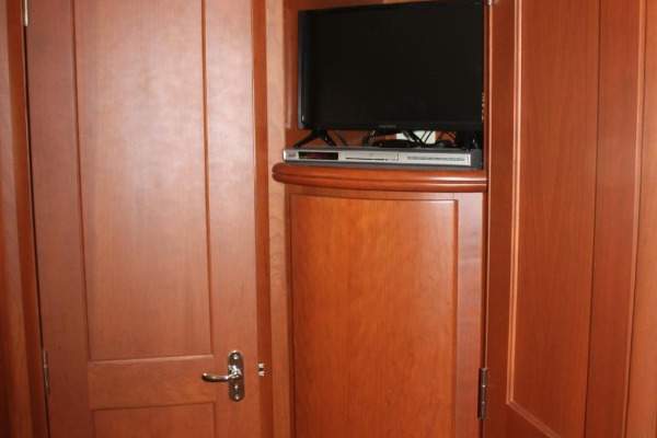 Our Wine Knot could be your home on the water!! Elevated side decks result in a huge salon/galley/dinette area which is tastefully finished with satin cherry cabinets, Corian counters, and synthetic leather furnishings. The full-service galley, a step down from salon, has a serving counter, generous storage and hardwood flooring. The aft master stateroom has a walkaround queen bed and separate shower and toilet stalls along the port bulkhead, and the forward stateroom also has queen bed and private access to the second day head. The aft deck has a hardtop, bench seat, and wet bar. She is equipped with T-380 HP Crusader 8.1 HO engines with 182 hours, a 10 kW Kohler genset with 210 hours and bow and stern thrusters. She is in her slip in Greenport NY and ready for her next owner. Call for an appointment for a viewing.