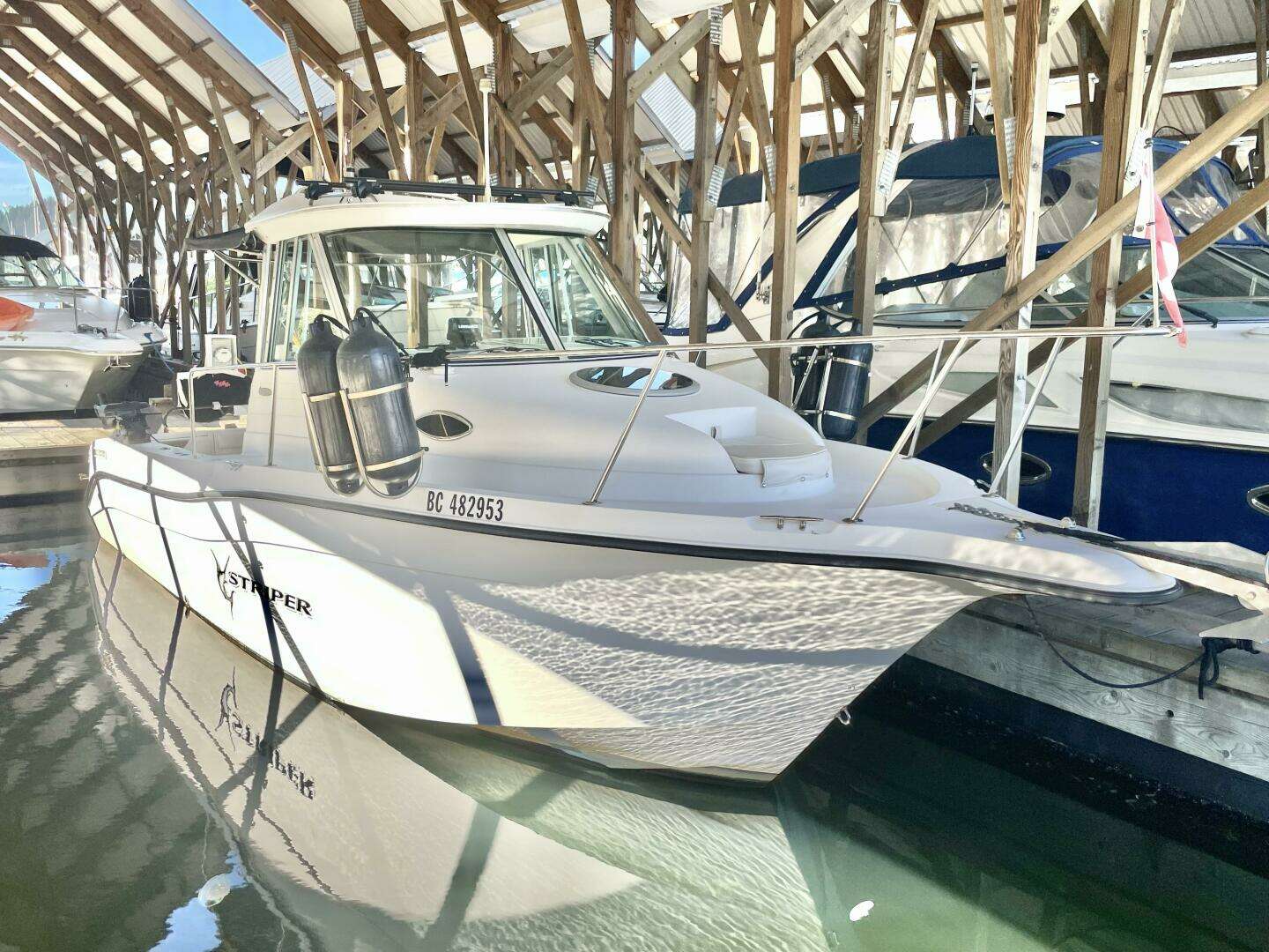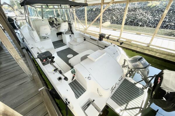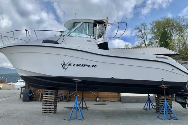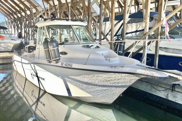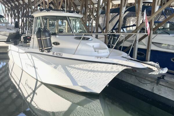 This Striper has seen consistent care and thoughtful upgrades throughout ownership, including a brand new galley stove, Yakima roof storage racking, anti-slip deck runners recently installed, and fresh hull and leg paint, new zincs, and general service maintenance completed in March 2025. All service records are available upon request.