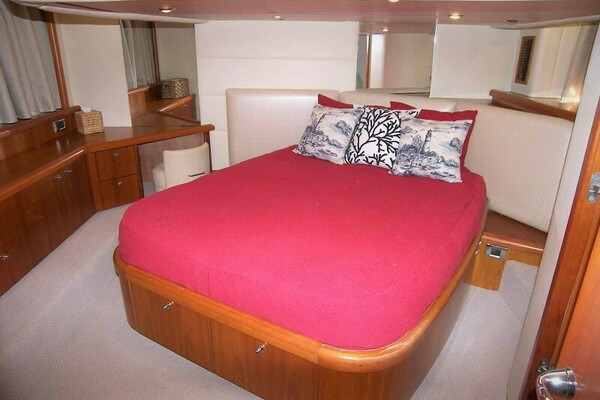 The full beam ensuite Master is aft of the Galley. The twin upper Lower Stateroom is opposite the Galley to starboard. The VIP is forward and has a full Head there shared with the upper Lower Guest Cabin.