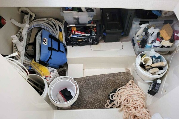Under the steps and accessed via the companionway to the Master is another very large hanging locker.