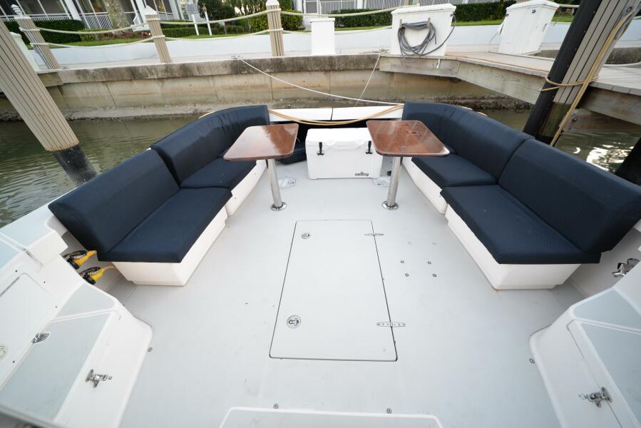 - Cockpit: Large, with twin transom doors for water access, hardtop for toys (kayaks, paddleboards)