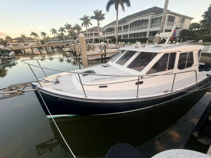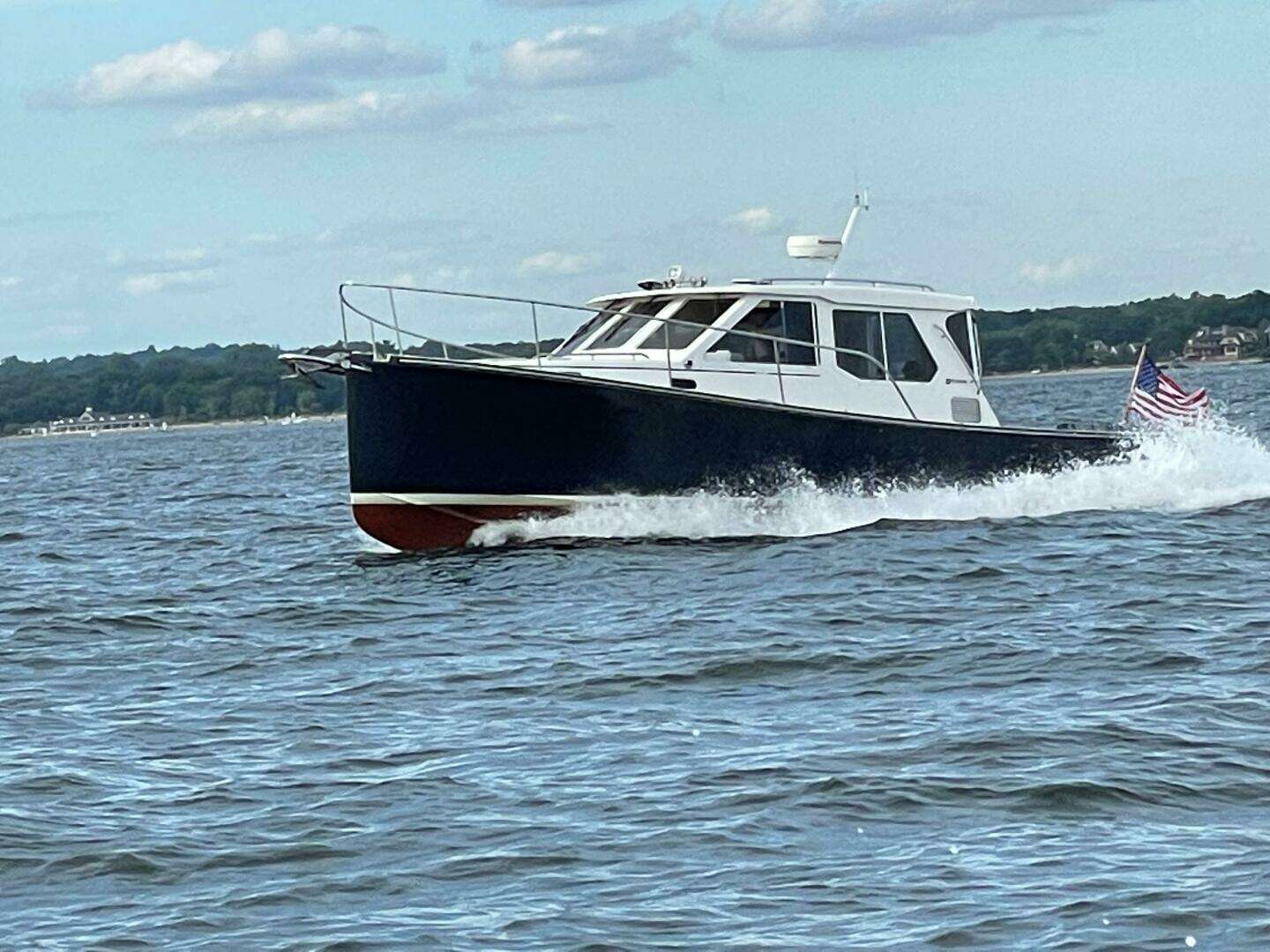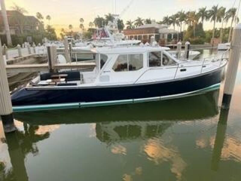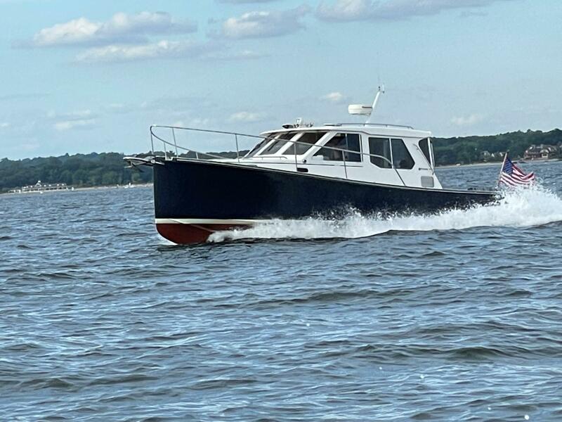 Take the helm of this 2006 True North 38 Heritage Edition, the Ultimate Downeast "Sport Utility" Cruiser. Discover the perfect blend of classic New England lobster boat aesthetics and modern versatility with this exceptional 2006 True North 38. Built by the reputable Pearson Composites using the high-tech SCRIMP resin infusion method for a strong yet lightweight hull, this vessel is designed for both elegant cruising and active water sports. A timeless classic featuring signature plumb bow, iconic reverse transom, dual transom doors for easy access / toy storage with just 980 hours offers unparalleled quality and a lifetime of enjoyment.