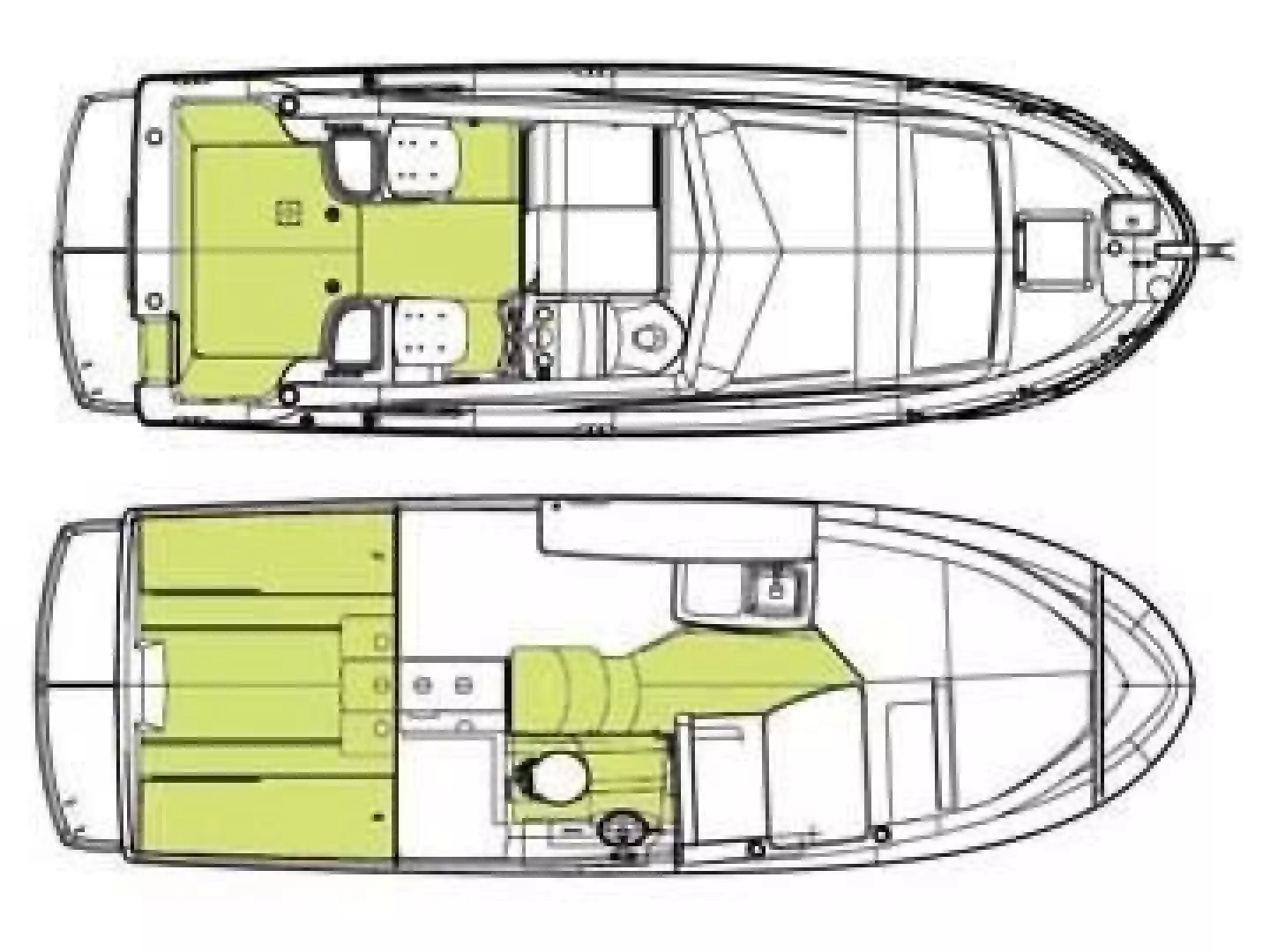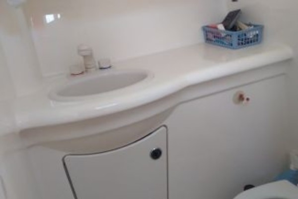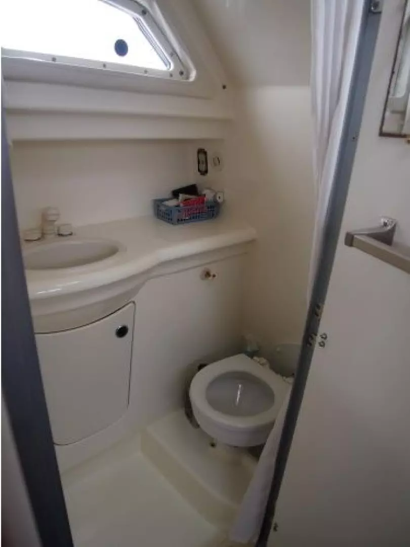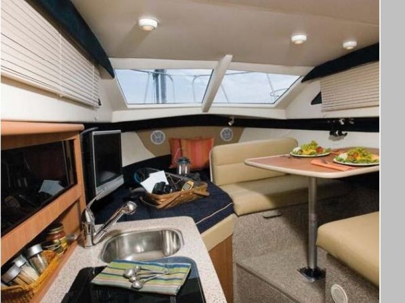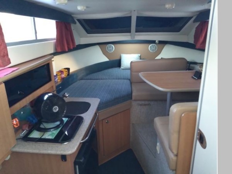 - Spacious V berth forward with a quarter berth for sleeping or storage
