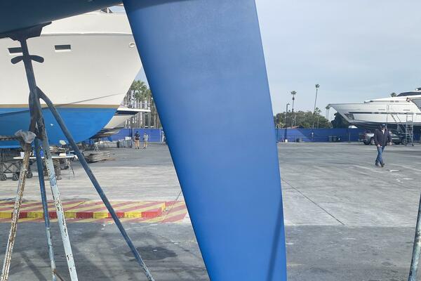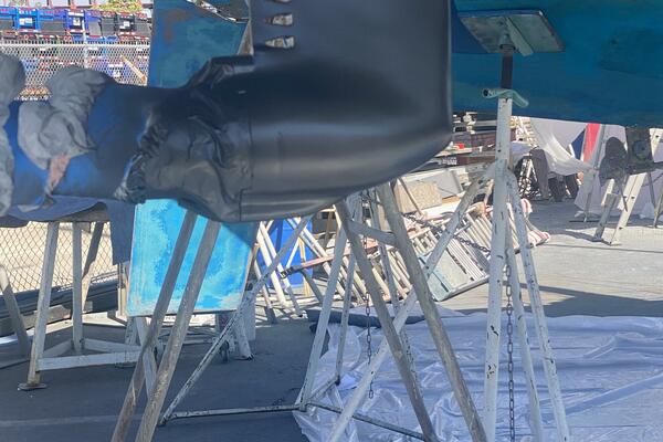 2016 Kelp cutter on keel and titanium blade in front of rudder (Gary Mitchell design)