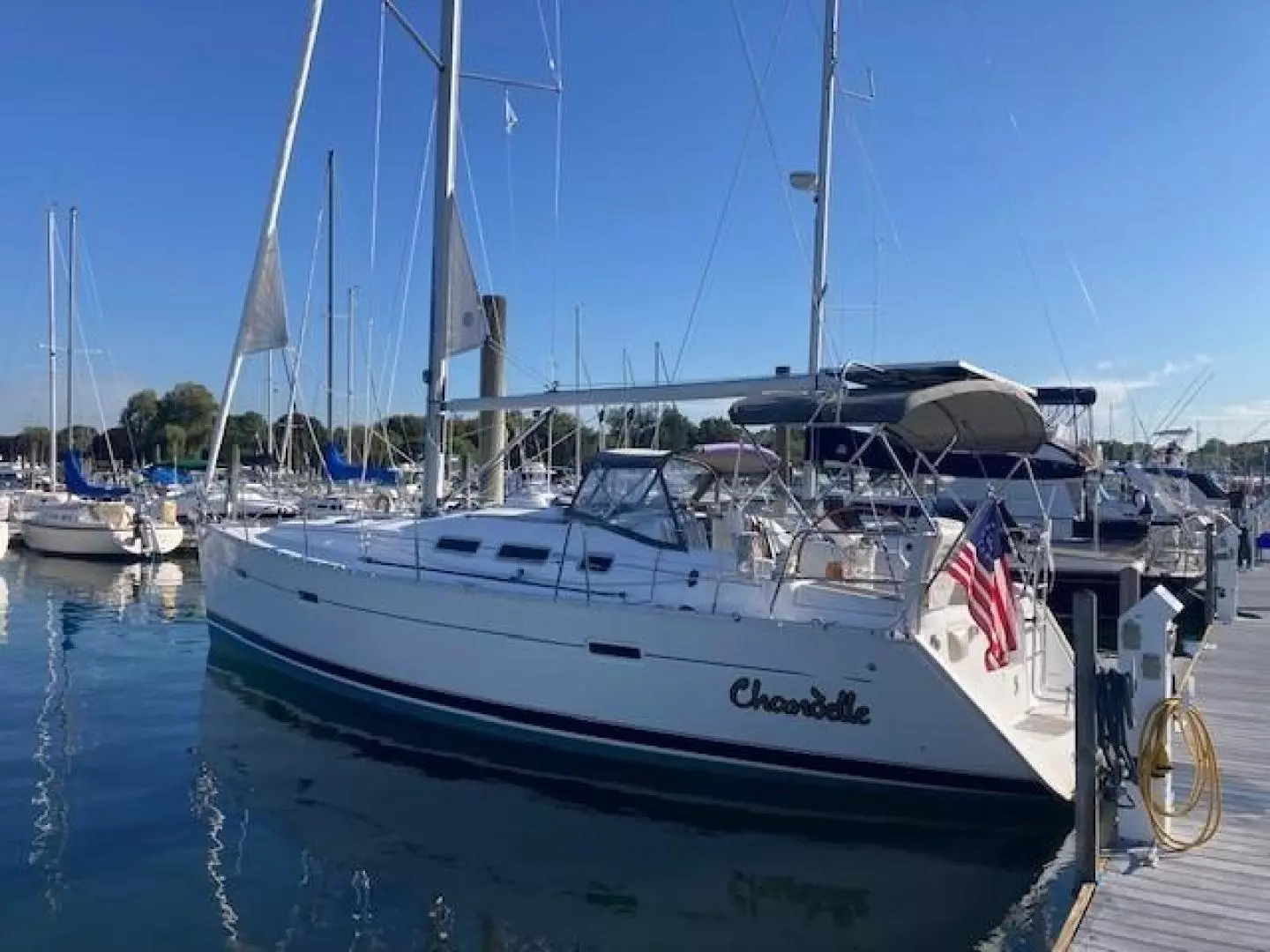 Chandelle is an exceptional example of Beneteau’s popular 373 model. She has had several upgrades and her immaculate, spacious interior is bright and cheerful. Equipped with a windlass, dodger, furling main, 105 and 140 genoas and an asymmetyrical 1.5oz spinnaker.