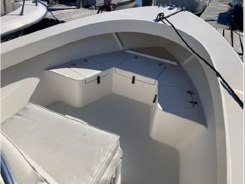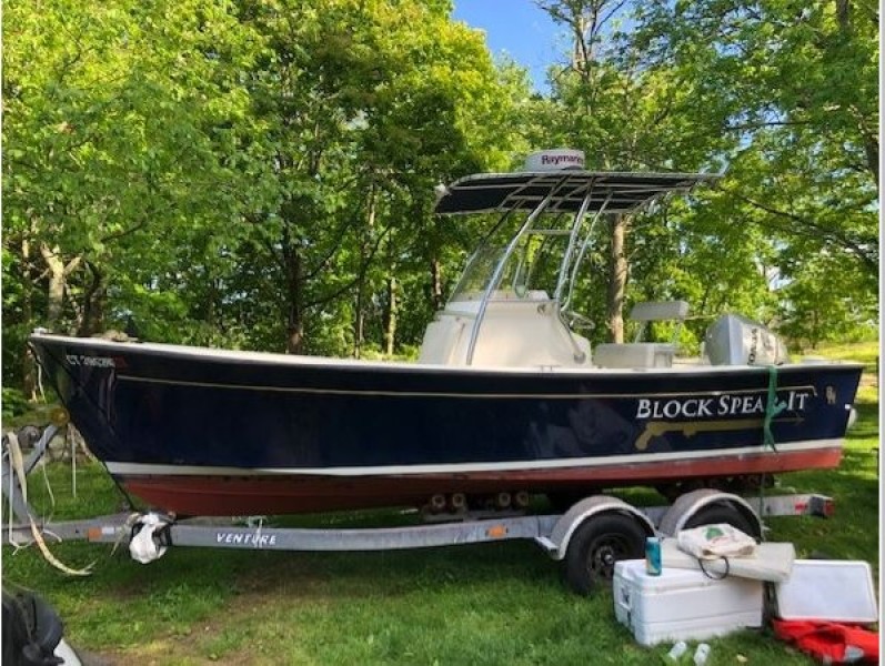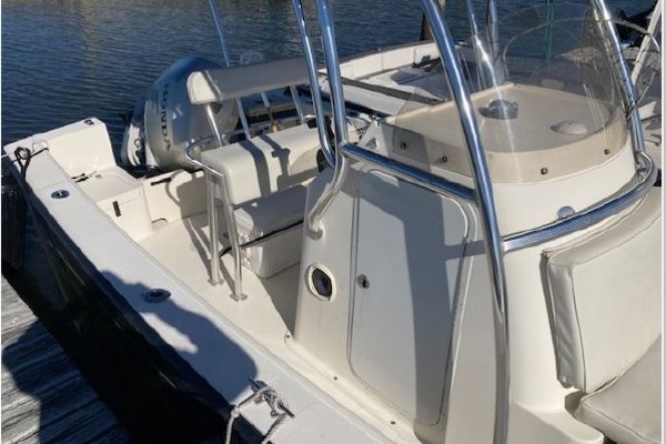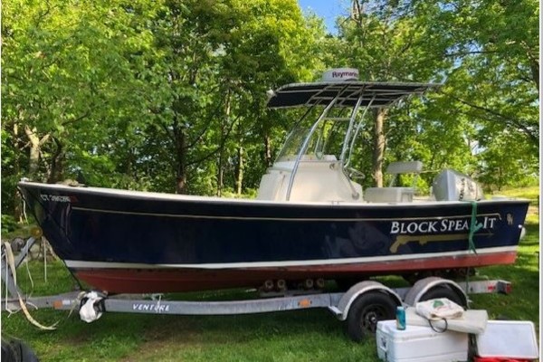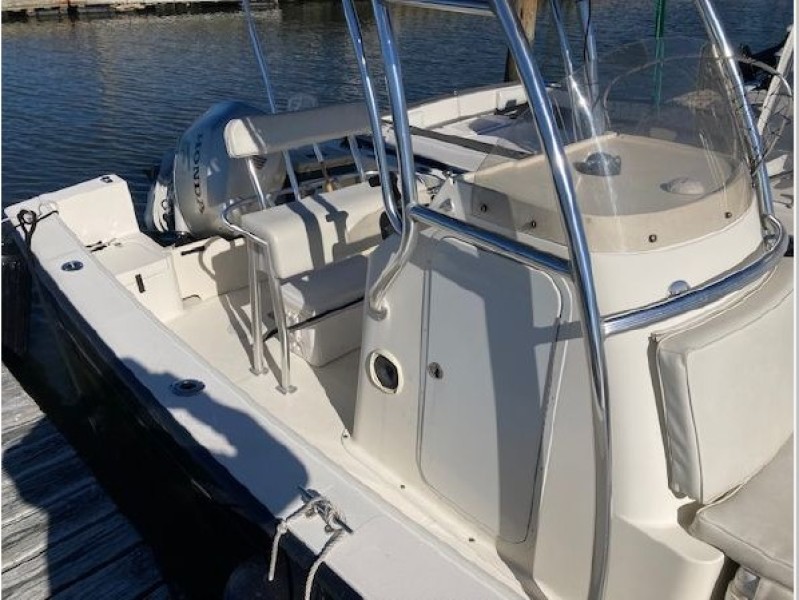 New October listing! A rarely available and sought after Bristol Harbor 21 Center Console. These boats are known for their hi-tech (no wood) construction and gorgeous styling! Even the boat's T-top is gracefully raked back to enhance the boat's lines. There is good storage throughout and a door in the console provides access to the porta-potty. Equipped with a nice leaning post, Icom VHF radio and a Garmin GPS chartplotter with depth finder and radar. Powered by a reliable and quiet 150hp Honda Four Stroke outboard with about 950 hours. A Venture tandem trailer is also included. Don't wait as these boats typically don't stay on the market very long.