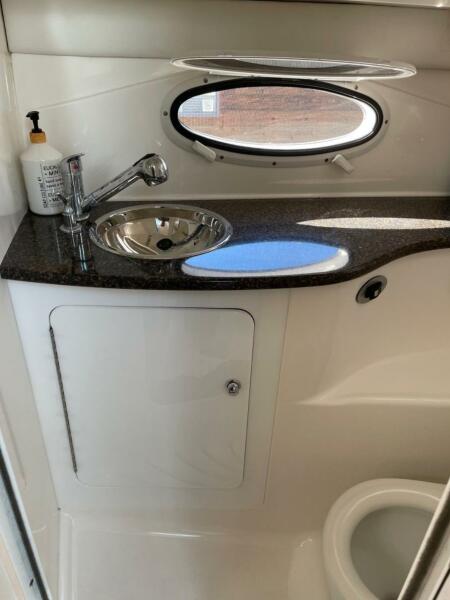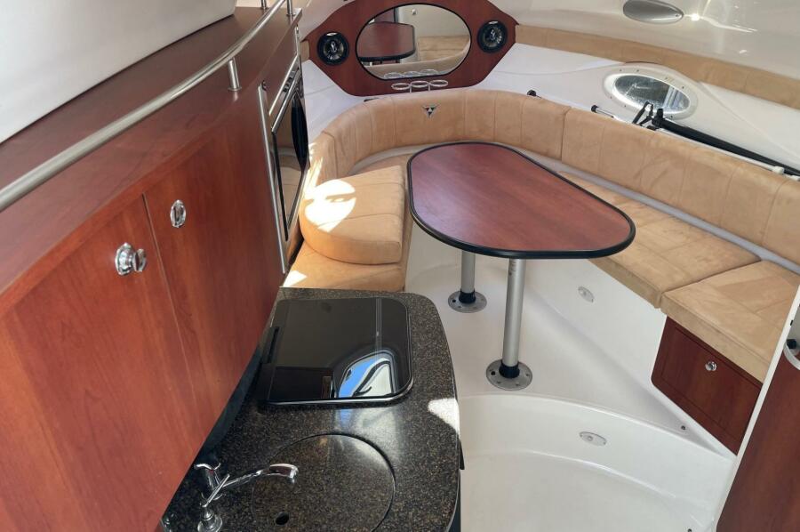This Campion Allante 825 series stands out as a rare combination of luxury, performance, and intelligent design—an exceptional example of Canadian boatbuilding at its finest. This model delivers the feel and presence of a much larger vessel while maintaining the agility and handling of a true sport boat. Its expansive cockpit is one of its most impressive features, offering generous wraparound seating, space for entertaining, and thoughtful touches such as a wet bar, additional refrigeration, and a raised walk‑through windshield that provides excellent visibility and easy access to the foredeck.