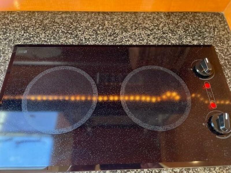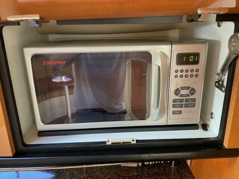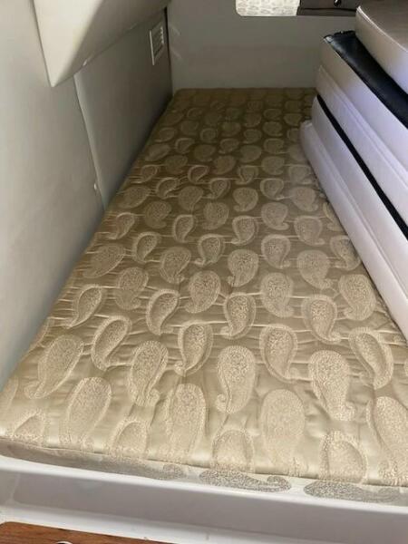 The cabin features sleeping accommodations for five, including two in a private rear cabin. There's an enclosed head, and a functional convertible dinette. Going through the companionway you step down onto the rich teak and holly flooring. There is an enclosed head with shower to starboard. That bulkhead abuts the galley with two burner electric stove, sink with storage beneath, and refrigerator/freezer. Forward in the bow area is the C-shaped dinette which converts into a roomy double berth. Abaft of that to port is another settee with table which converts into a single berth. In the port rear corner is a door which accesses the private master, featuring an entry with full-standing headroom and a useful vanity with sink, and a double master berth arranged beamwise.