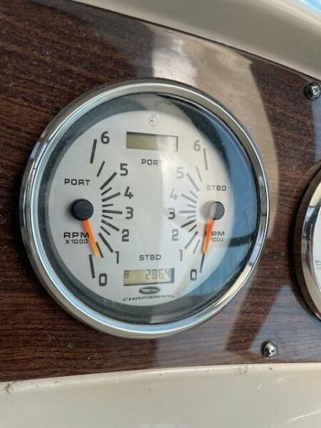 SeaHorse is a fine example. She boasts a bevy of optional equipment. From her low hour (<300) upgraded 320 hp Volvo duoprop engines, reverse cycle heat and air, bow thruster, low hour (<200) Kohler generator, electric windlass, Raymarine Radar/GPS, and much much more, you'd be hard pressed to find a better equipped 330 Signature on the market.