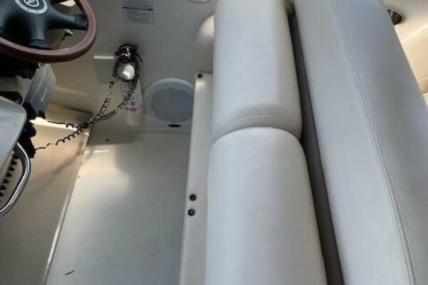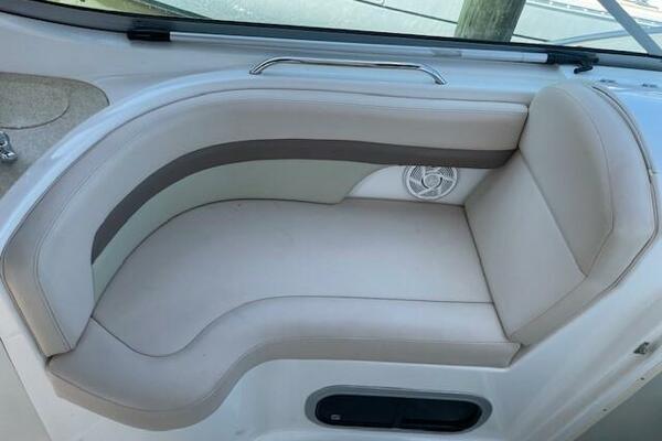 Forward is a roomy captain's seat with flip-up bolsters to starboard, a comfy companion seat to port and a center-line walk-through windshield for easy bow access.