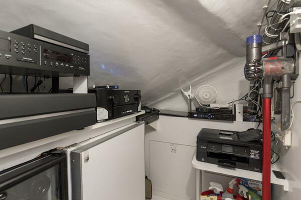 - AC under counter Sub Zero refrigerator (4) and freezer located in starboard attic