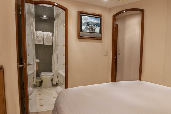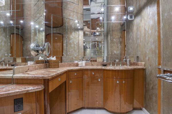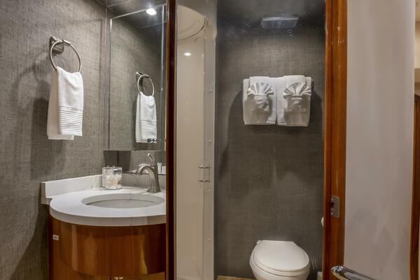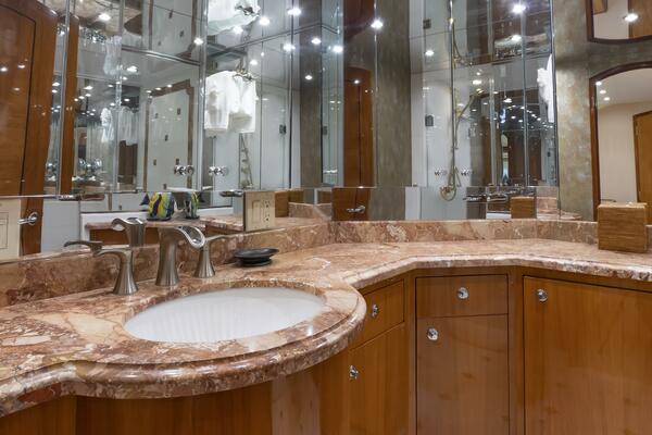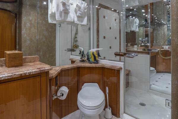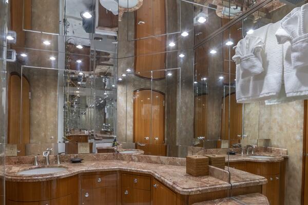 Below deck, Gallopin offers four beautifully appointed staterooms, each with ensuite accommodations. The full-beam master suite is a private haven, featuring a king berth, panoramic windows, a walk-in wardrobe, and a marble-clad ensuite bath. Every cabin reflects a dedication to comfort and tranquility befitting a true luxury yacht.