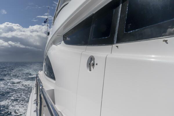 From the moment you approach her gleaming white hull — a durable fiberglass masterpiece sculpted for strength and grace — Gallopin exudes prestige. The signature Hatteras lines convey both power and poise, while her sleek semi-displacement design ensures stability and efficiency whether cruising coastal waters or embarking on ocean passages.