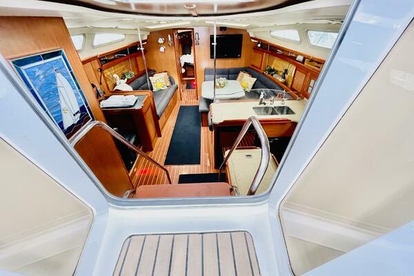 Aeolus is an extraordinarily kept Hunter 49, offering the Hunter trademark of singlehanded sail-ability. All sheets and halyards lead to the cockpit. A dual-ended mainsheet on an electric winch allows adjustments from both the cockpit and the companionway. All of this being offered for $265,000.