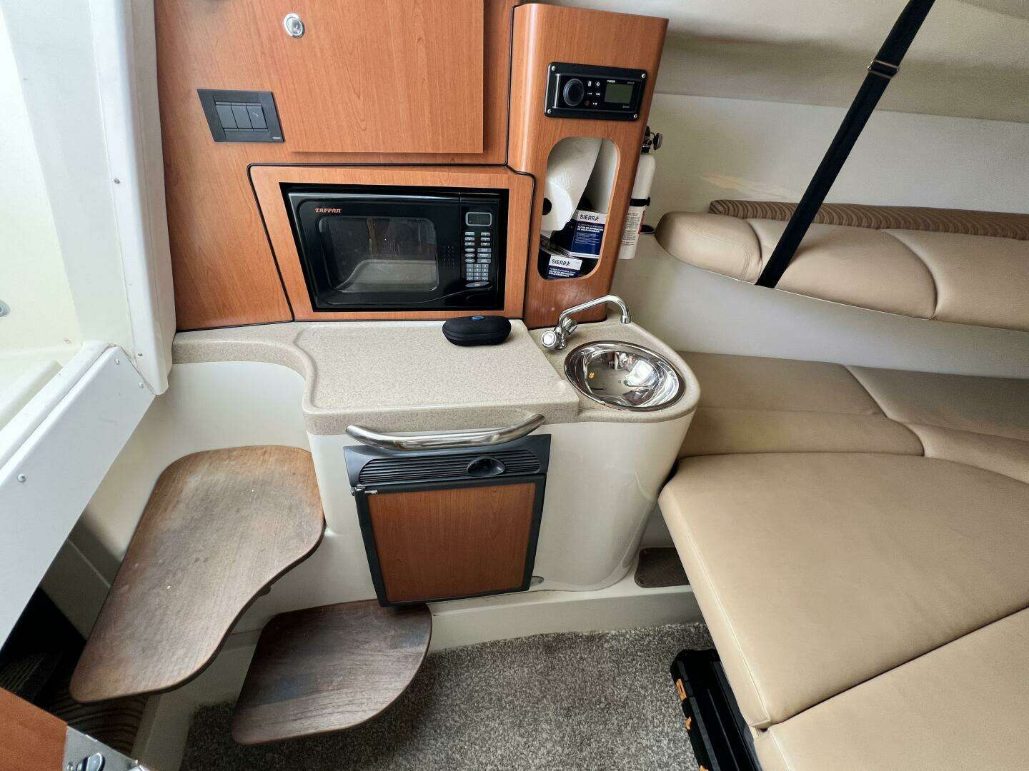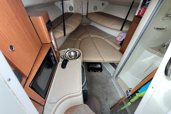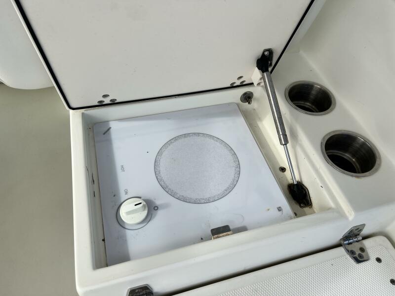Below deck, the Vector 2900 VX offers a comfortable Cabin with Air Conditioning, Full Galley, Enclosed Head, and Comfortable Forward and Aft Berths, perfect for overnight trips or weekend getaways.