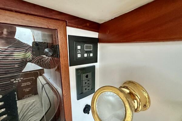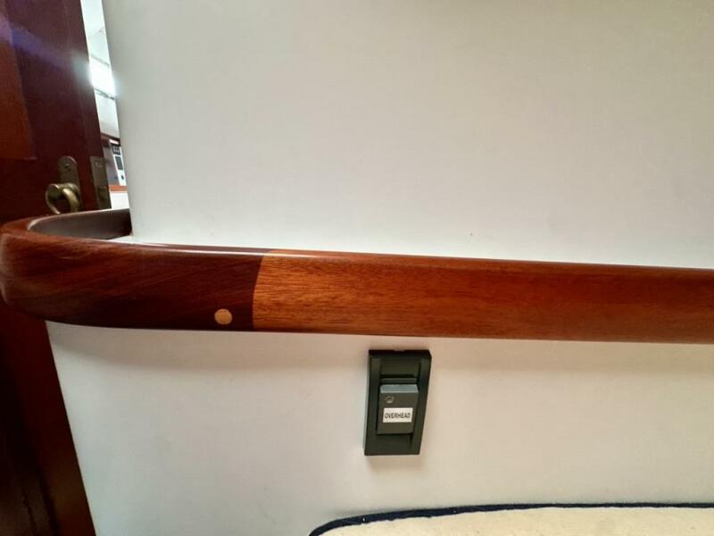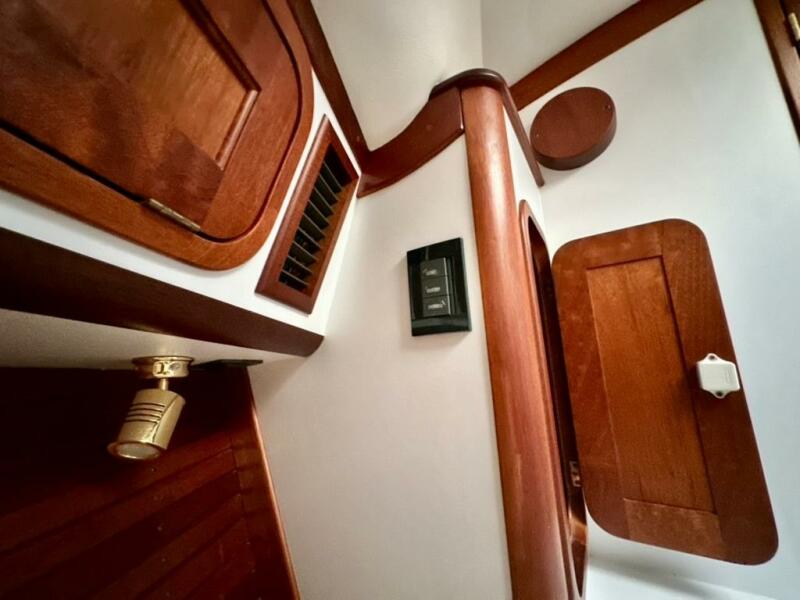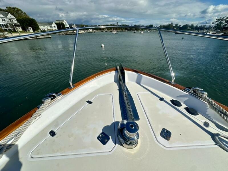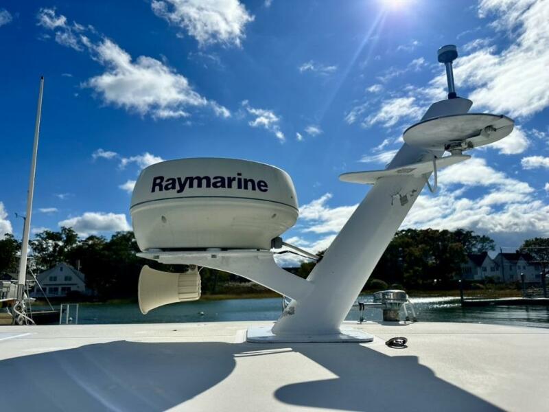 2024: New windlass and 200’ of chain; generator thermostat, belts, and full service; aft deck canopy with carbon fiber poles; 3M gray vinyl wrap over flag blue Awlgrip
