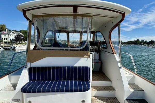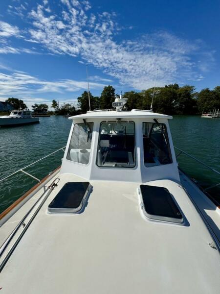 The Legacy 34 Sport Express is an ideal pocket cruiser for a couple or small family; offering classic Downeast style, comfortable accommodations, and an easy-to-handle size. With her efficient twin Cummins diesel engines, inviting cockpit, and well-appointed interior, she’s equally suited for a weekend getaway or an extended coastal cruise.