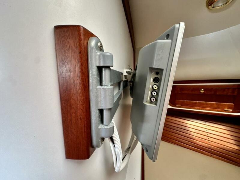 - Toshiba LCD TV (on a swivel to watch from forward cabin or L-shaped settee)