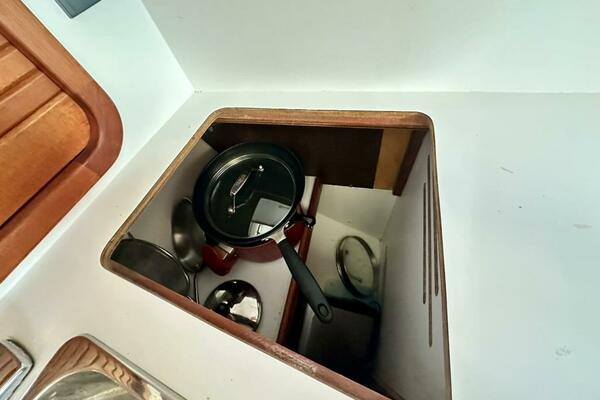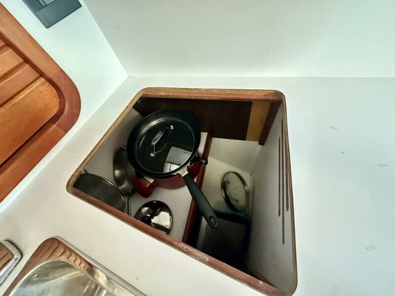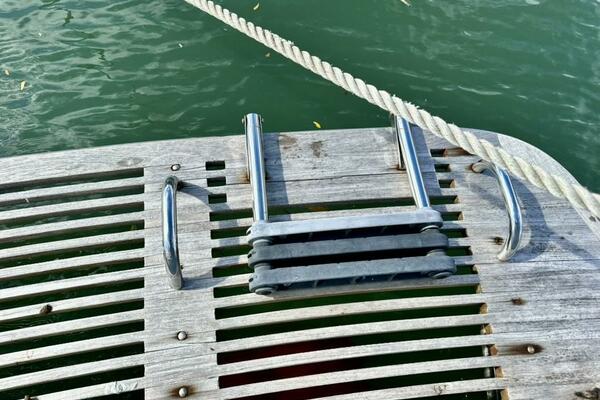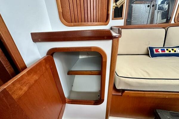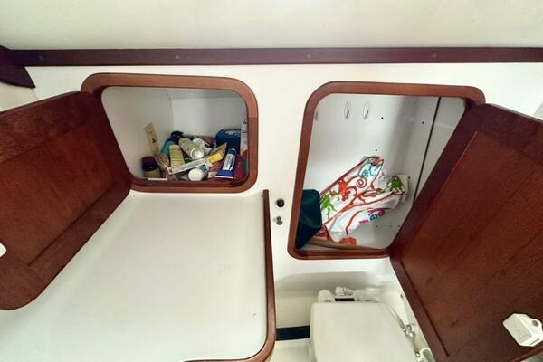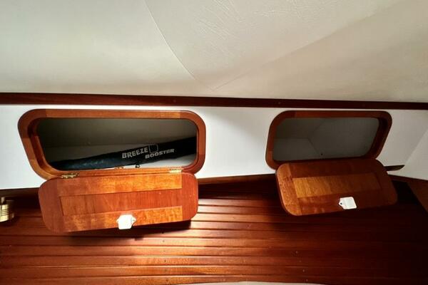 - (2) Bench seats, one built in over a large storage compartment, one on varnished teak bench (dynamic)