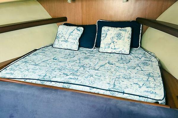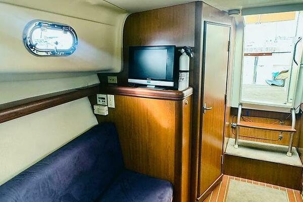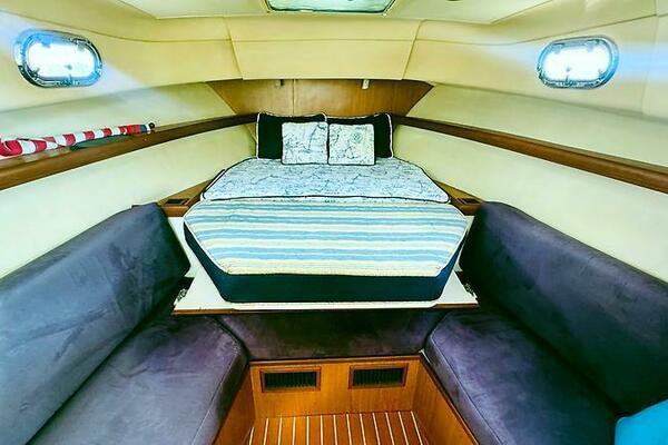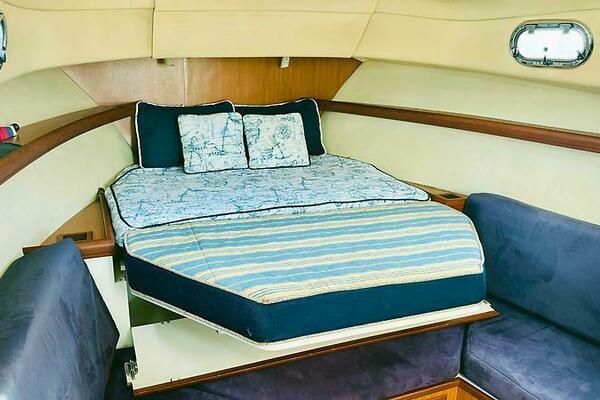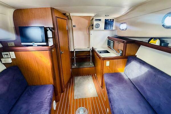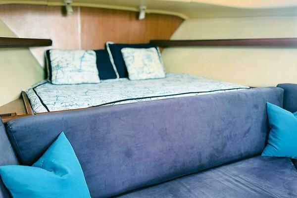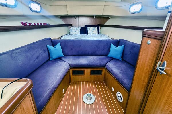 - Teak interior with convertible V-berth