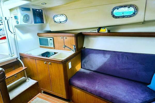 - Galley with microwave, refrigerator, sink and electric stove