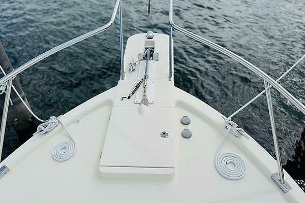 Featuring a spacious cabin with air conditioning, a full galley, enclosed head, and a folding queen berth, she offers cruising comfort rarely found in this size. Recent maintenance, service records, and turnkey condition make her ready for your next adventure.