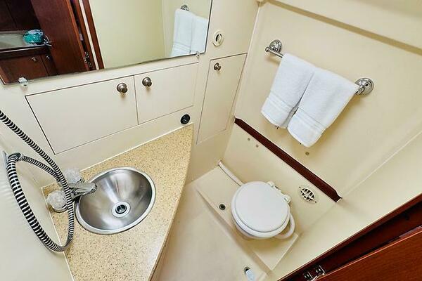 - Enclosed head with electric toilet, sink and stand-up shower