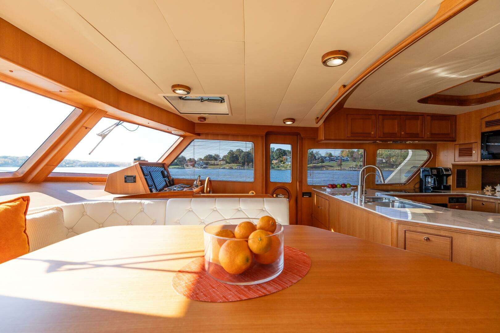 The large galley is centrally located, makes for a great spot to entertain. Plenty of refrigeration and freezers (along with additional refrigeration on the command bridge and crew quarters/utility-work room) you can easily provision for multiple months of food.