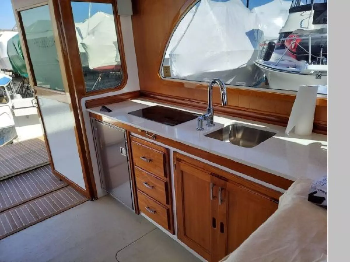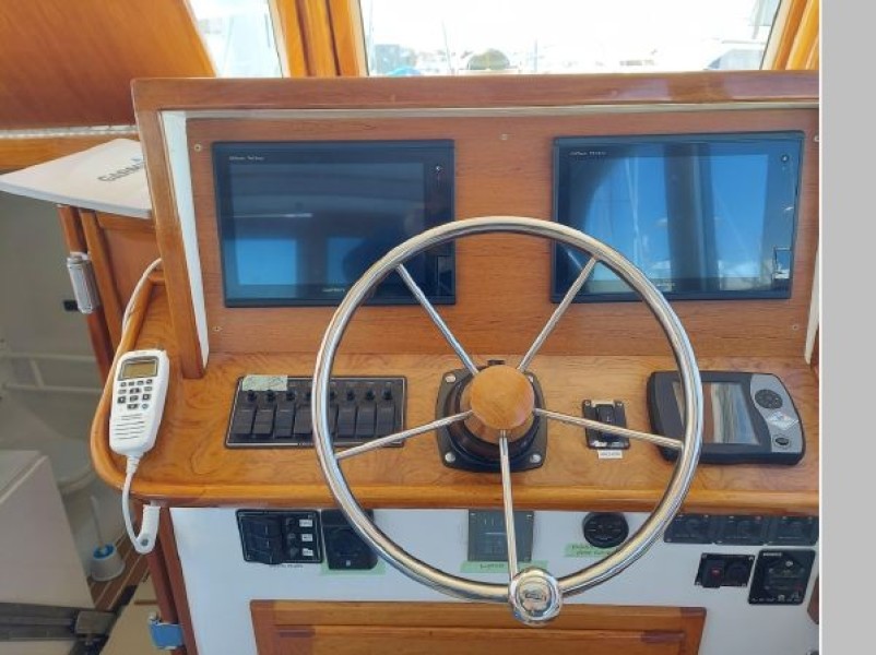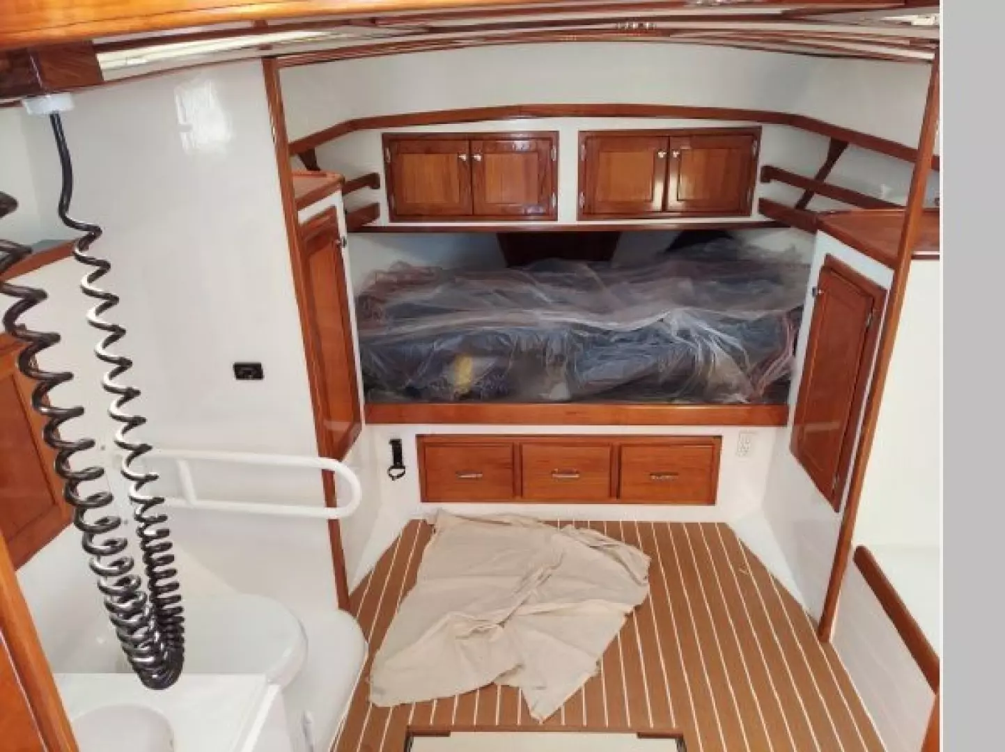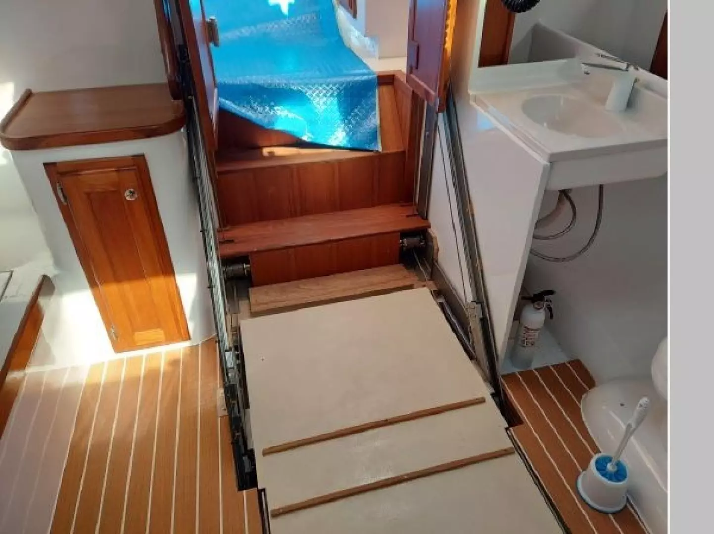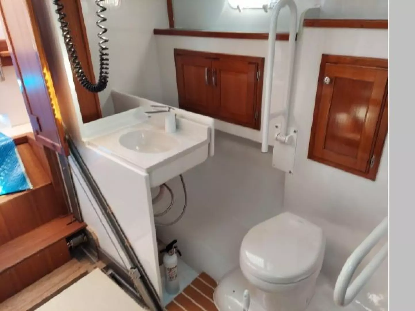 The past owner of this boat was an avid boater who was disabled. This boat has been completely reworked to accommodate his special needs. There is a wheel chair door with ramp on the starboard side to enter and exit the boat The aft deck has been raised to meet the level of the salon floor. The salon area is wheel chair accessible with a hydraulic ramp to go forward. Below is a handicapped head to port with a settee seat to starboard and an athwartships bed forward. Invoices are available for all the upgrades to the boat including all new electronics. Shown by appointment only, located at our yard Safe Harbors Mystic.