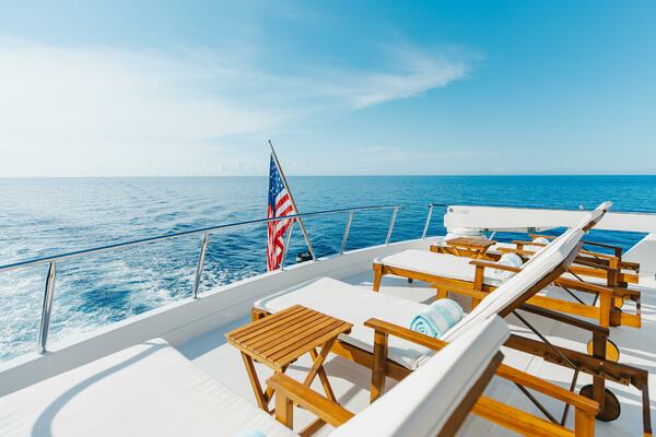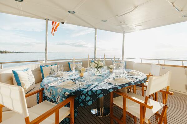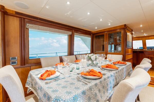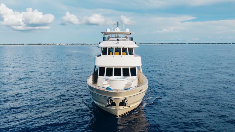 This amazing yacht features an extraordinary amount of space, both inside and out, her Tri-Deck layout offers a volume of room and accommodations typically found on vessels in the 120 range. Both elegant and comfortable, there isn't a "bad seat in the house". By design, the dimensions of the vessel provide for a wide-open feel on the inside. On the outside, her wide and protected walk around decks, Jacuzzi tub on the fore deck and a huge aft deck offer an unusual amount of exterior space. Sky lounge is actually a second salon that includes a large head as well as all the typical entertainment amenities, and much more.