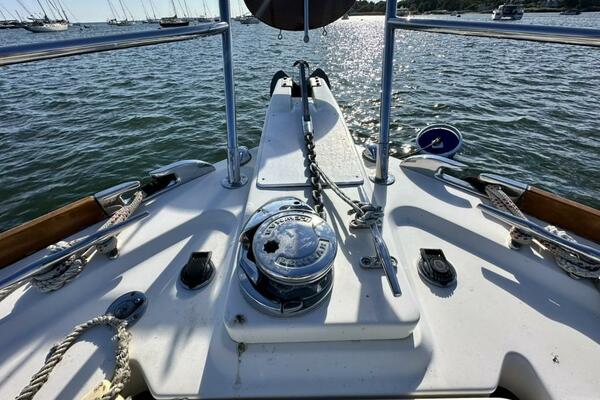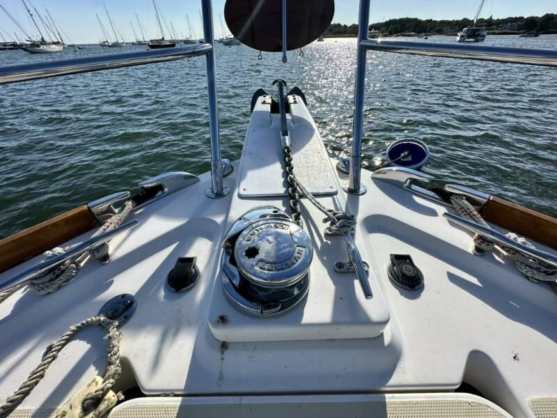 - Lewmar electric windlass with rope/chain gypsy. Foot switches on foredeck, and a remote with at helm