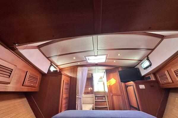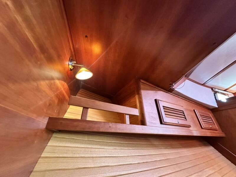 Two polished stainless opening ports provide ventilation and there is an overhead hatch above the berth. The interior has it's own air conditioning unit for both cooling and heat.