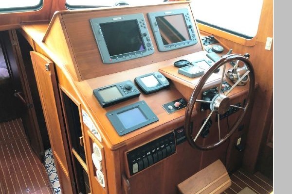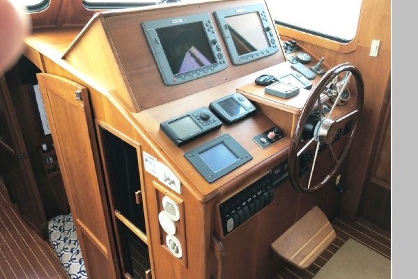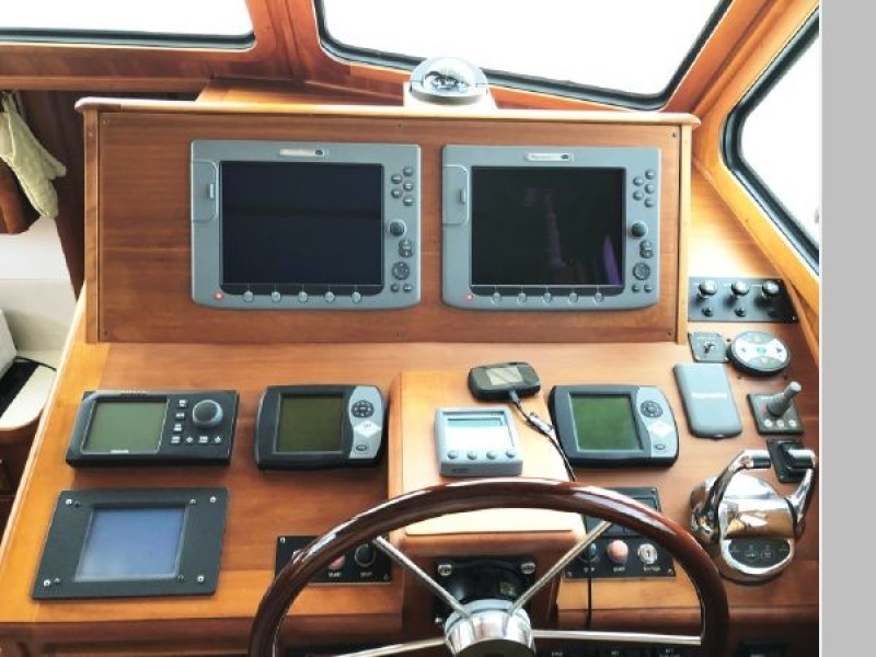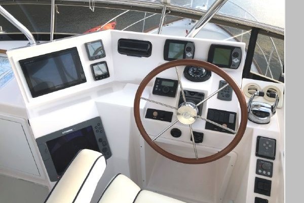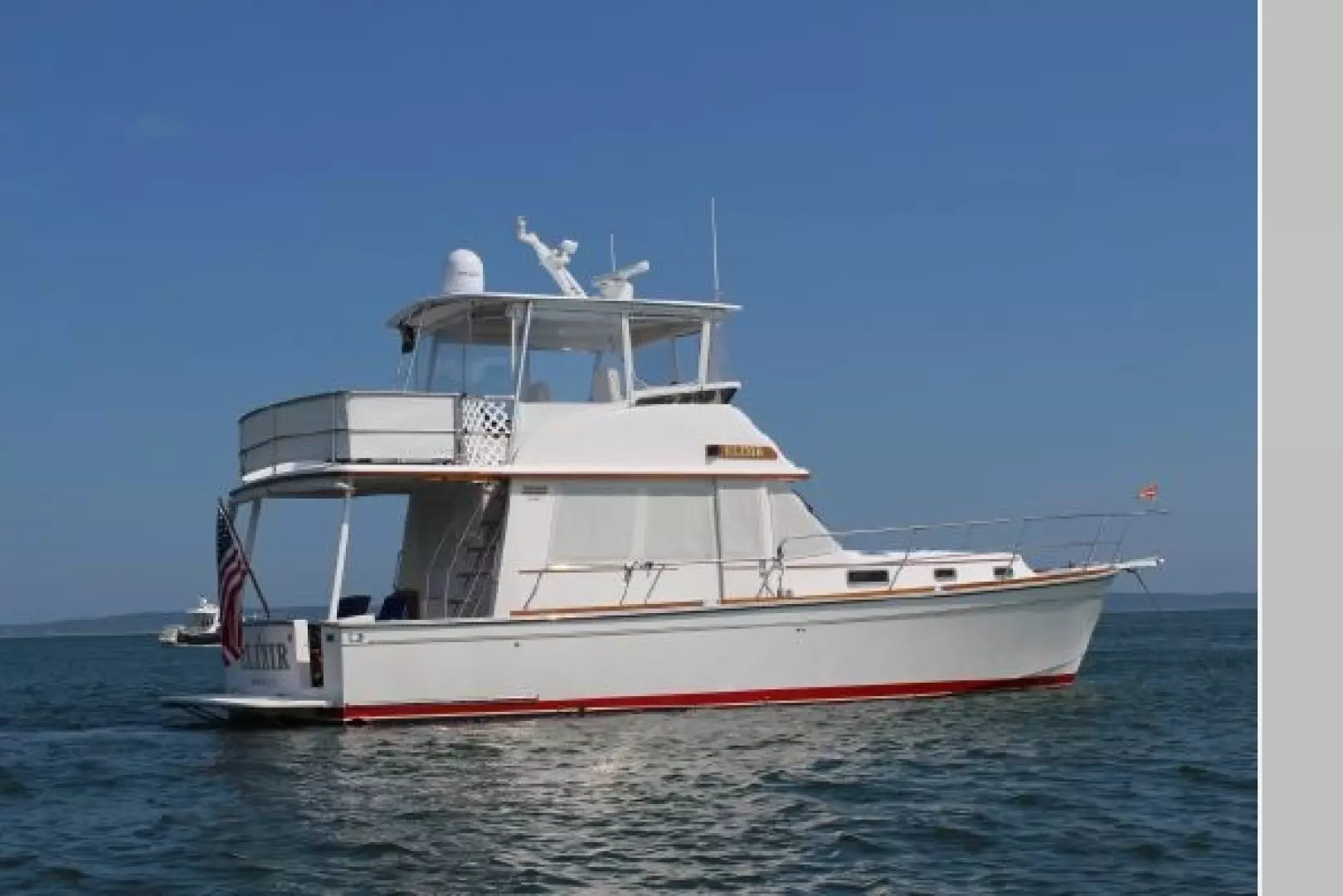 The ELIXIR is a superbly-equipped and maintained example of this very desirable SABRE 42 Sedan Bridge model. She features the optional CUMMINS 500 HP diesels, the Flybridge option (and she does retain the lower steering station too), a custom Factory modification to the Flybridge and the extended Hardtop aft over the Cockpit to provide an enhanced deck area and a hydraulic tender lift! A review of the Listing will certainly reveal all the rest of the details that make the ELIXIR a remarkably good choice for clients who aspire to acquire one of the nicest "Downeast" style yachts produced by SABRE over the years.
