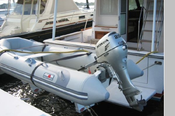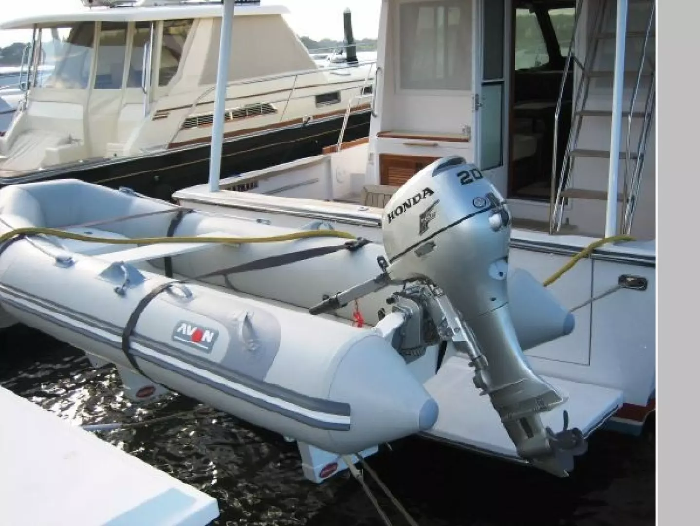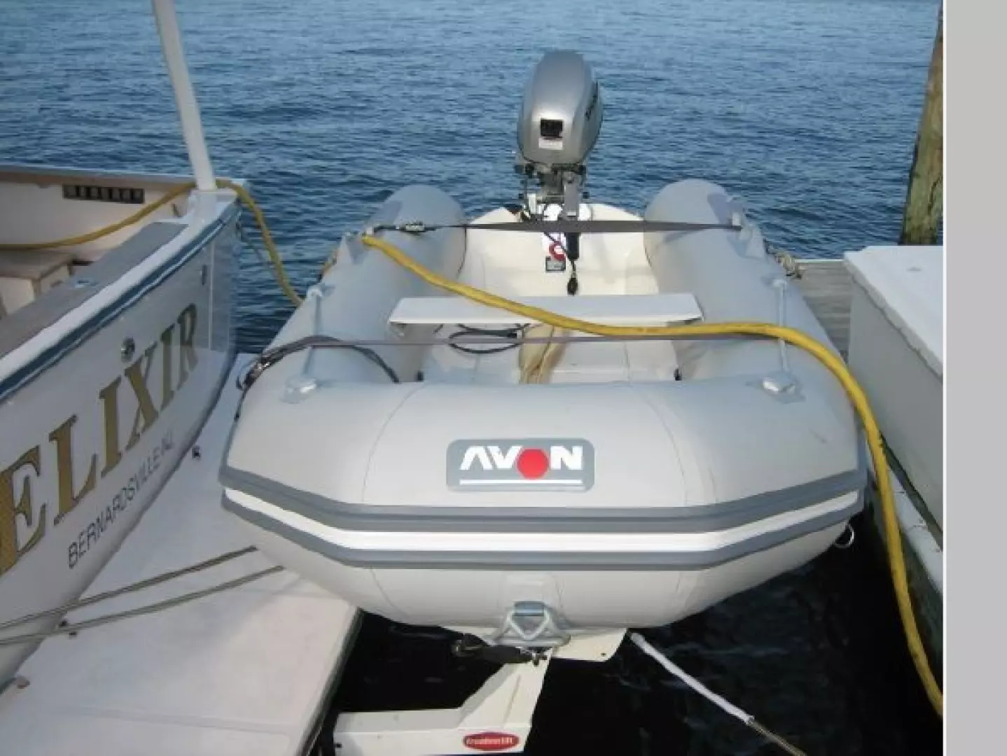 The ELIXIR's dinghy basic details are noted below. The exterior of the AVON tender is shown is several of the yacht's preliminary Listing photos.