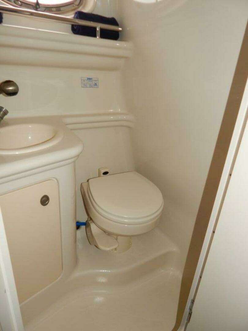 Forward is the convertible dinette/V-berth with storage underneath, the enclosed head is aft to starboard and the galley is to port, furthest aft is the double berth in the mid-cabin.