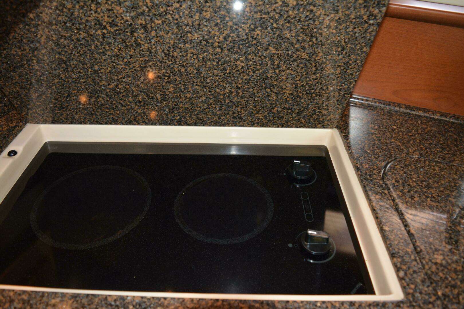 - Galley: A well-appointed galley includes a refrigerator, microwave/convection oven, and two-burner cooktop.