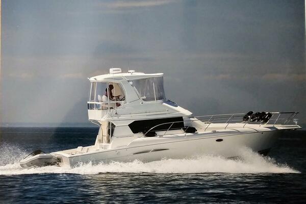A nice example of one of Silverton's all time most popular models. A bright and airy two stateroom interior, large cockpit and molded steps leading up to the spacious flybridge with plenty of seating. Good electronics. Powered with twin, low hour Yanmar 440hp diesels.