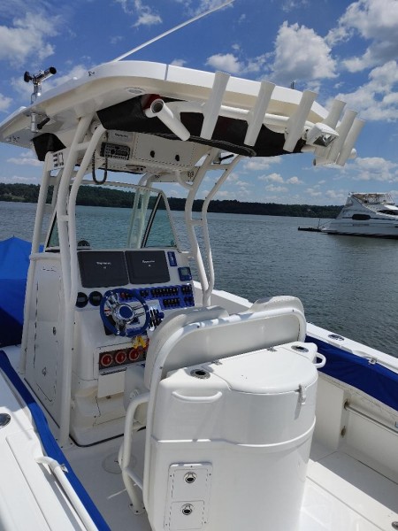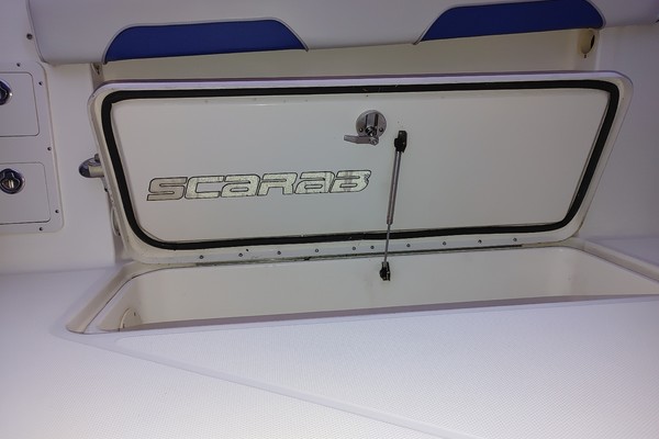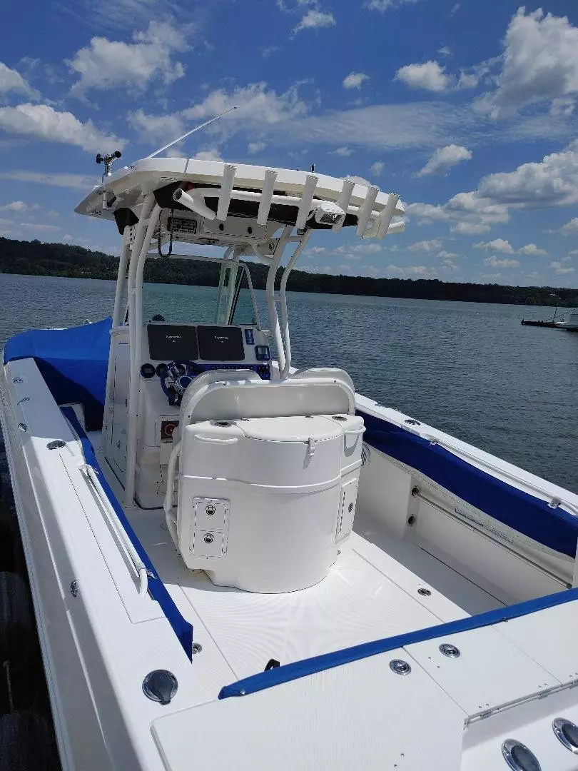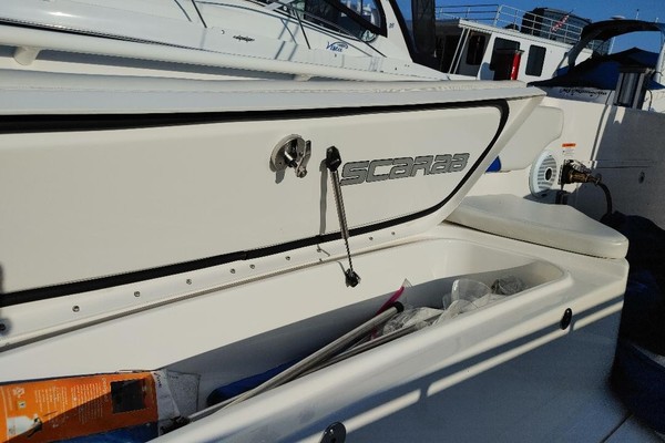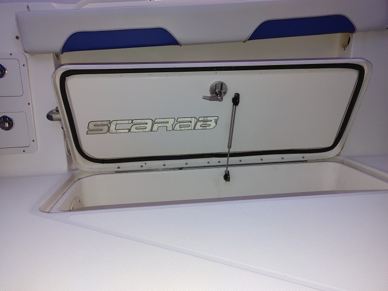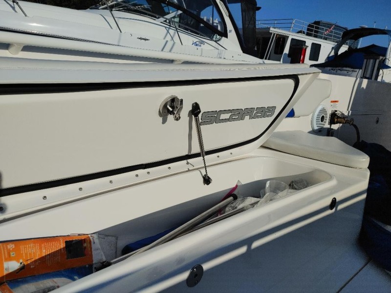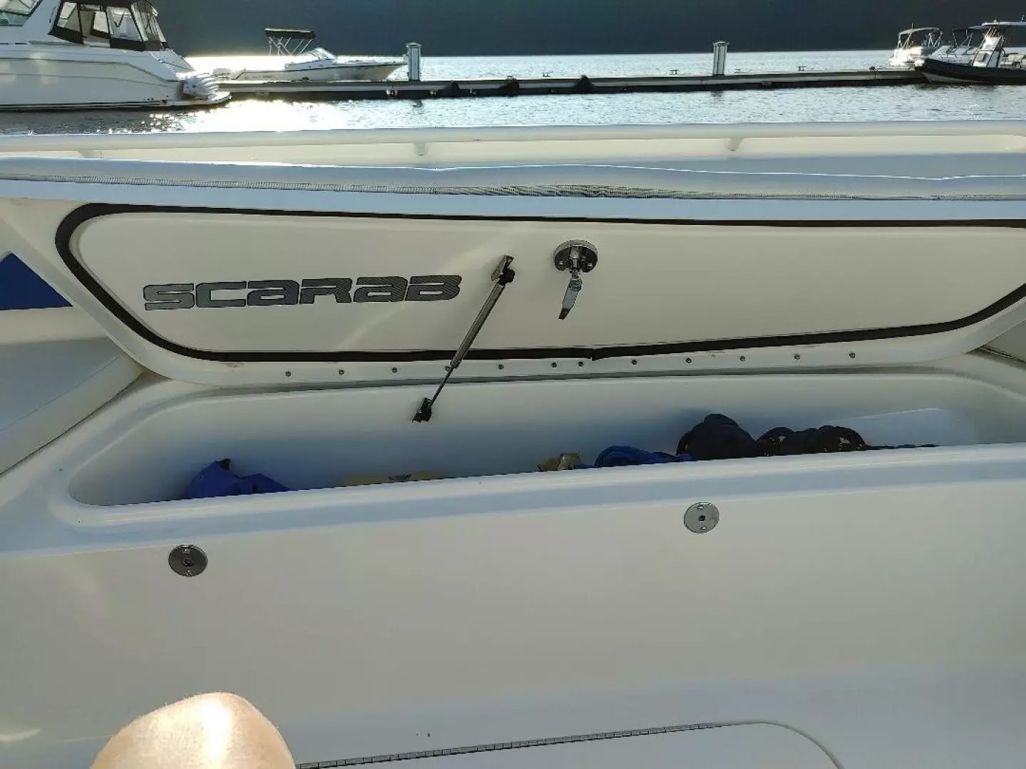 Alexander II is a one-owner boat maintained in like new condition with an open checkbook and has been a fresh water boat for the last 9 years. Renowned in high performance racing circles not too many years ago, this member of the Scarab fleet is dedicated to high performance fishing. She’ll get you out to the fishing grounds and back home while lesser boats fear to leave the dock. Proven performer on the competitive tournament circuit with legendary hull below and top-line fishing features above, the 30 Scarab Tournament represents everything Wellcraft Scarab craftsmanship stands for: impeccable quality, reassuring reliability and legendary performance perfectly crafted to deliver serious fishermen and thrill-seeking boaters an exceptional experience out on the water. Look beyond the open deck’s clean, contemporary styling to the fishing features close at hand. Large fore and aft fishboxes, built-in coolers, two generous bait-wells, rod holders and wide-open space to work your catch show the superior fish-ability. A hard-top overhead, plenty of dry storage and craftsman-like attention to details speak to superior comfort and every convenience. Whether it’s serious offshore fishing, a fun day cruising the islands, or pulling up to your favorite lunch or dinner restaurant where every head will turn and compliments abound, the 30 Scarab Tournament speaks to boat lovers looking to get themselves on a serious vessel! She is powered by T-250 HP Four Stroke Yamaha engines with only 390 hours. Check out the Full Specs and call for an appointment for a viewing. You will not be disappointed. She is truly turn-key and ready to go.