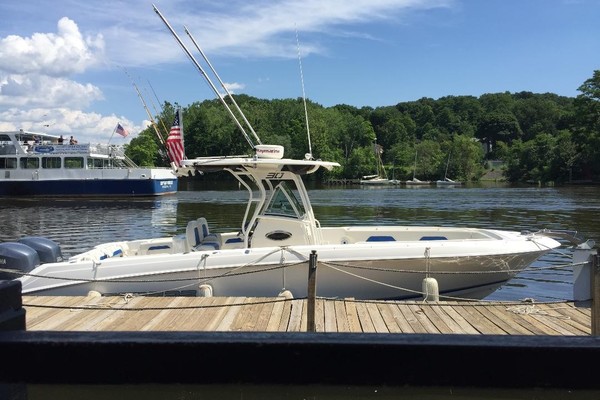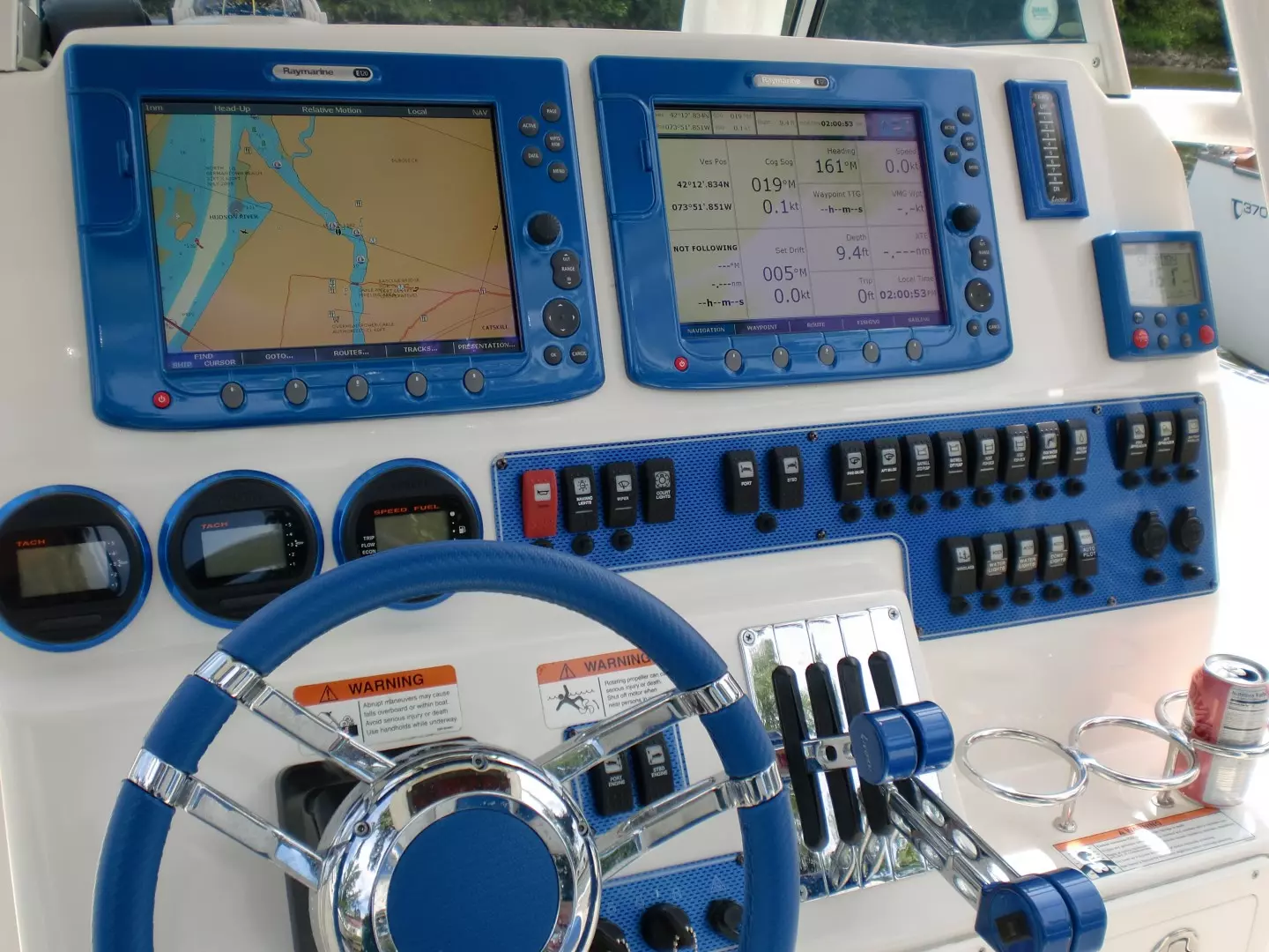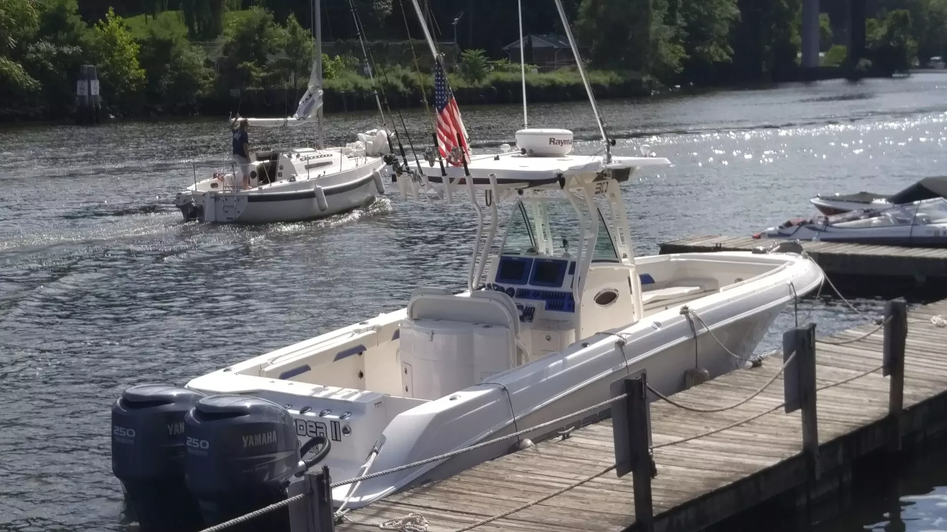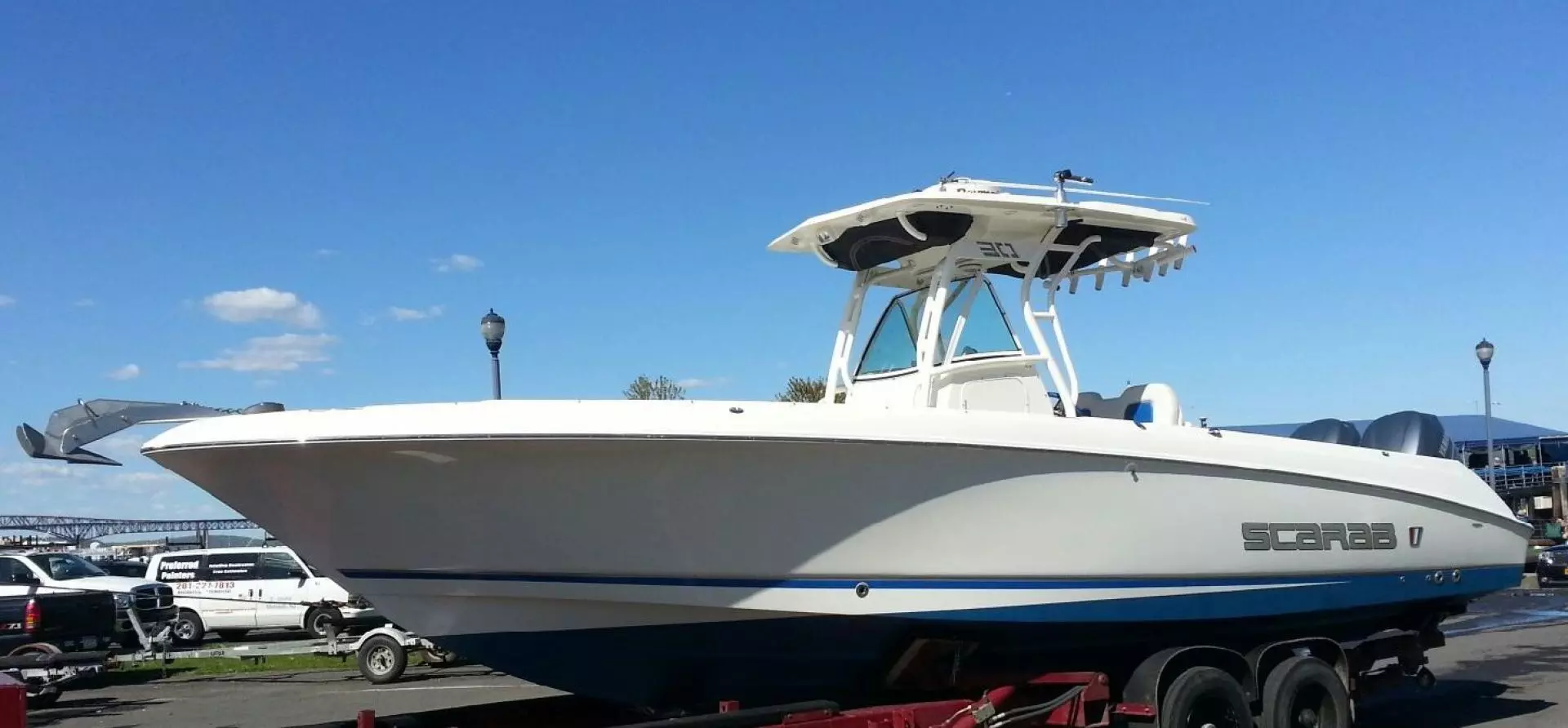 Alexander II is a one-owner boat maintained in like new condition with an open checkbook and has been a fresh water boat for the last 9 years. Renowned in high performance racing circles not too many years ago, this member of the Scarab fleet is dedicated to high performance fishing. She’ll get you out to the fishing grounds and back home while lesser boats fear to leave the dock. Proven performer on the competitive tournament circuit with legendary hull below and top-line fishing features above, the 30 Scarab Tournament represents everything Wellcraft Scarab craftsmanship stands for: impeccable quality, reassuring reliability and legendary performance perfectly crafted to deliver serious fishermen and thrill-seeking boaters an exceptional experience out on the water. Look beyond the open deck’s clean, contemporary styling to the fishing features close at hand. Large fore and aft fishboxes, built-in coolers, two generous bait-wells, rod holders and wide-open space to work your catch show the superior fish-ability. A hard-top overhead, plenty of dry storage and craftsman-like attention to details speak to superior comfort and every convenience. Whether it’s serious offshore fishing, a fun day cruising the islands, or pulling up to your favorite lunch or dinner restaurant where every head will turn and compliments abound, the 30 Scarab Tournament speaks to boat lovers looking to get themselves on a serious vessel! She is powered by T-250 HP Four Stroke Yamaha engines with only 390 hours. Check out the Full Specs and call for an appointment for a viewing. You will not be disappointed. She is truly turn-key and ready to go.