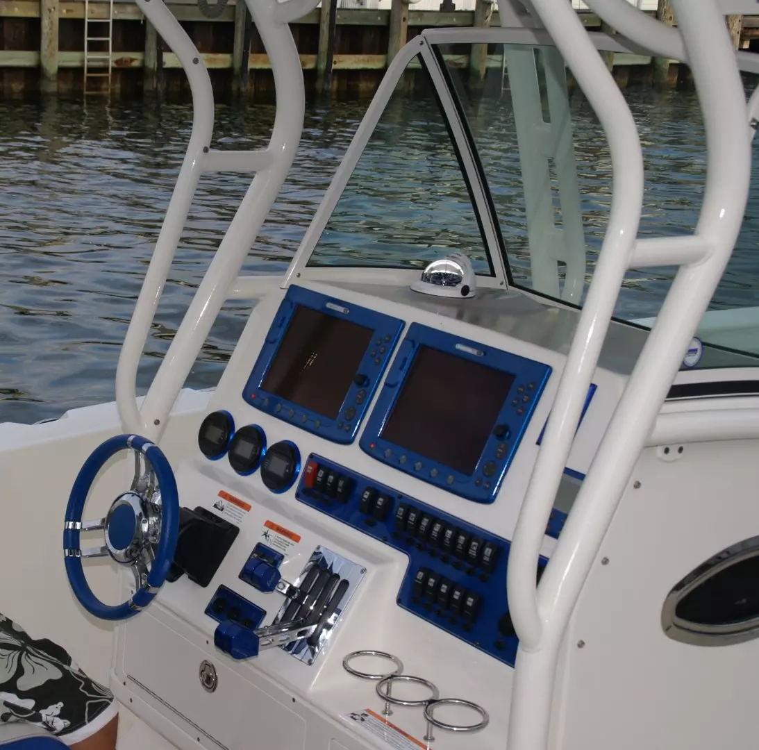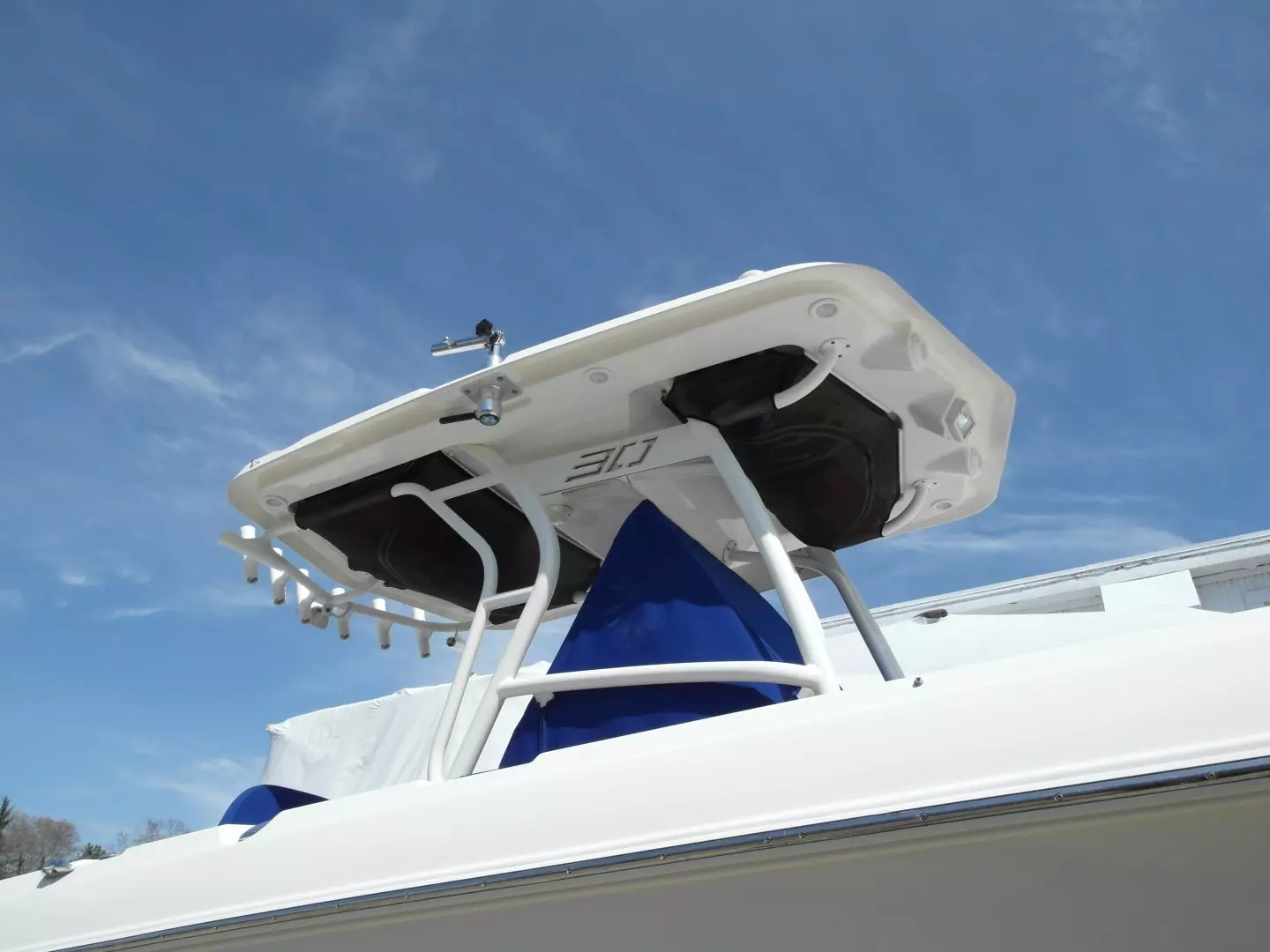 Powder Coat OEM Custom Factory White--all railings, T-Top frame, and helm seat framing.